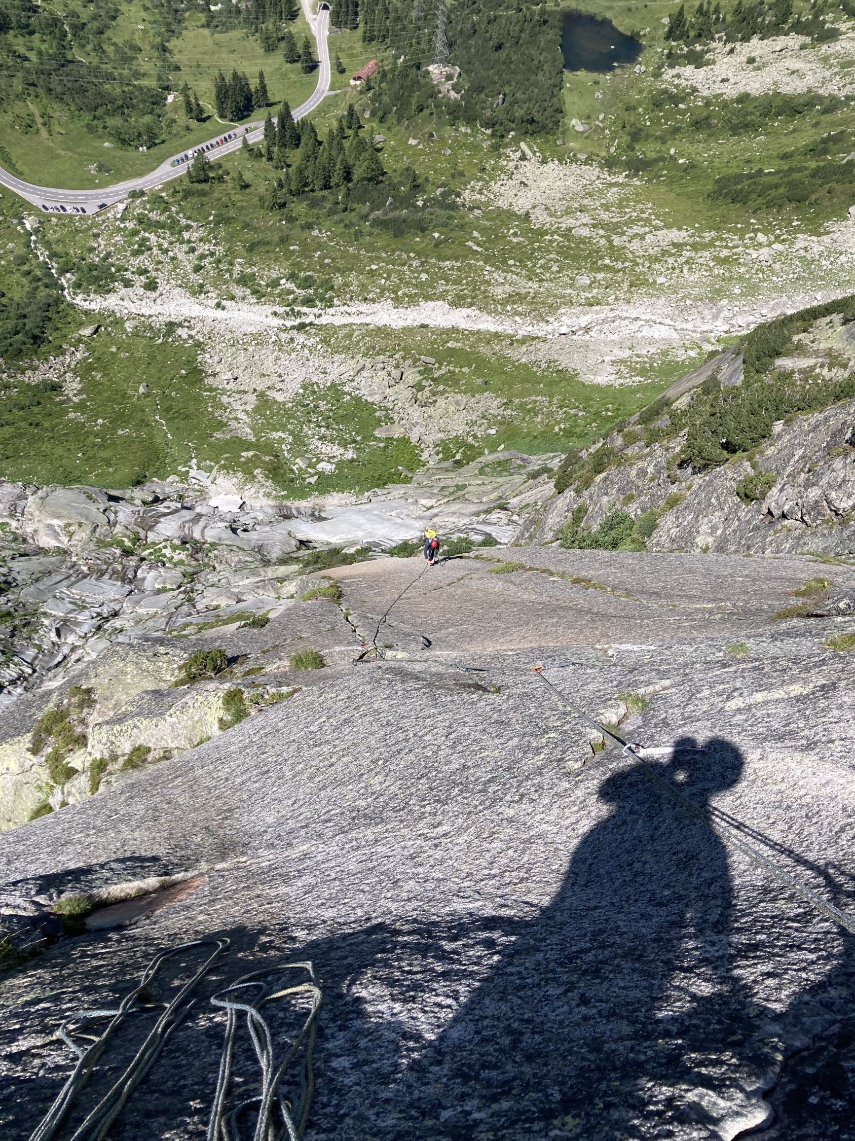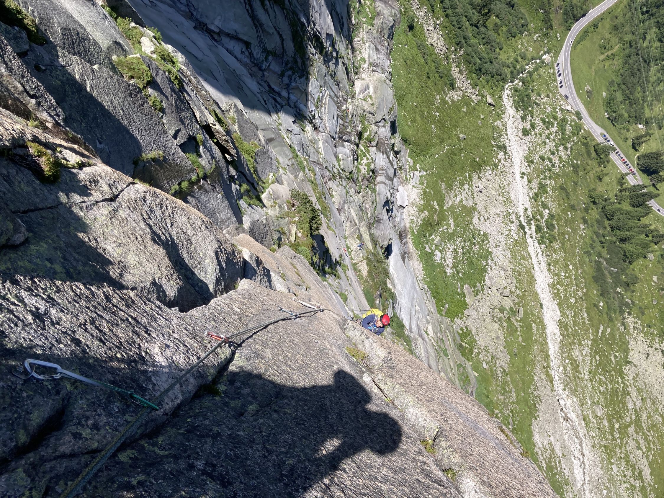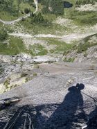 Wir kletterten nur bis nach SL9 wegen des Windes (+ Nachfolgeseilschaft; Risiko Steine zu lösen beim Abseilen/Seil Abziehen) und Zeitbegrenzung (Abreisetag).