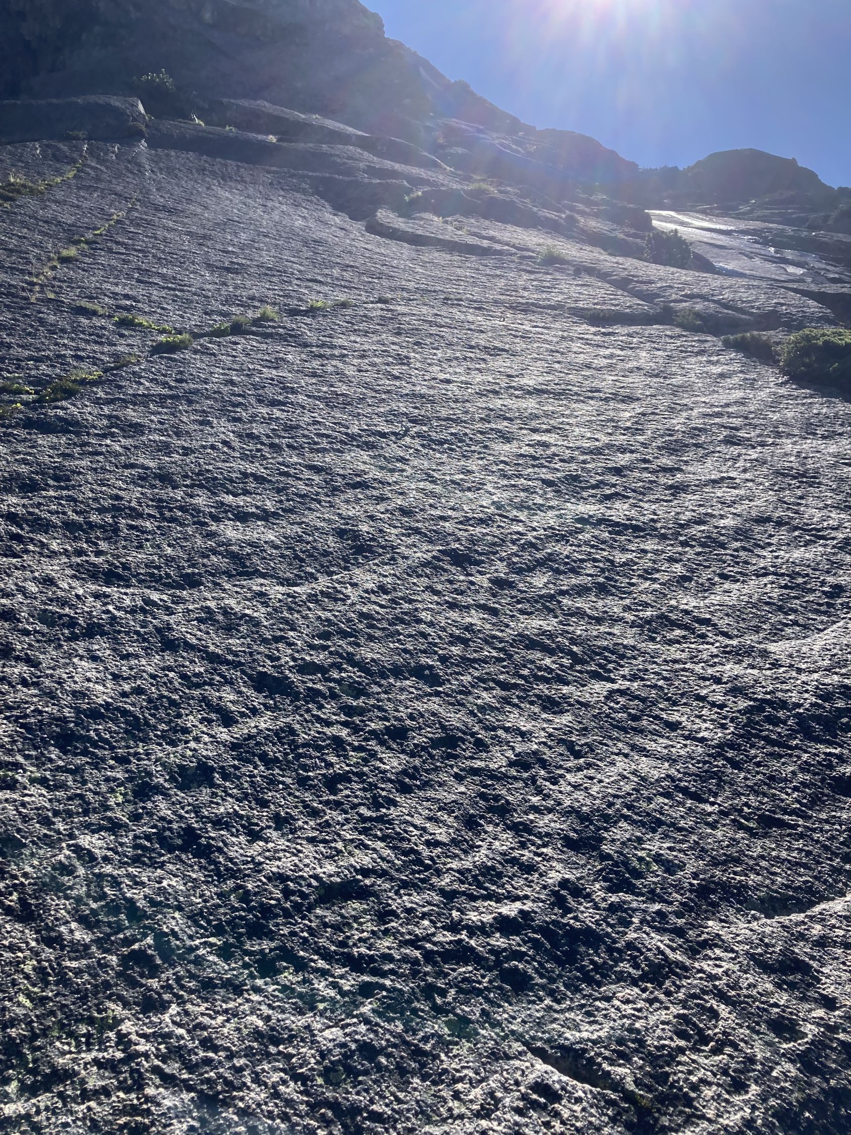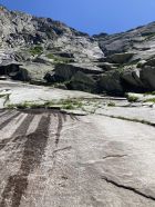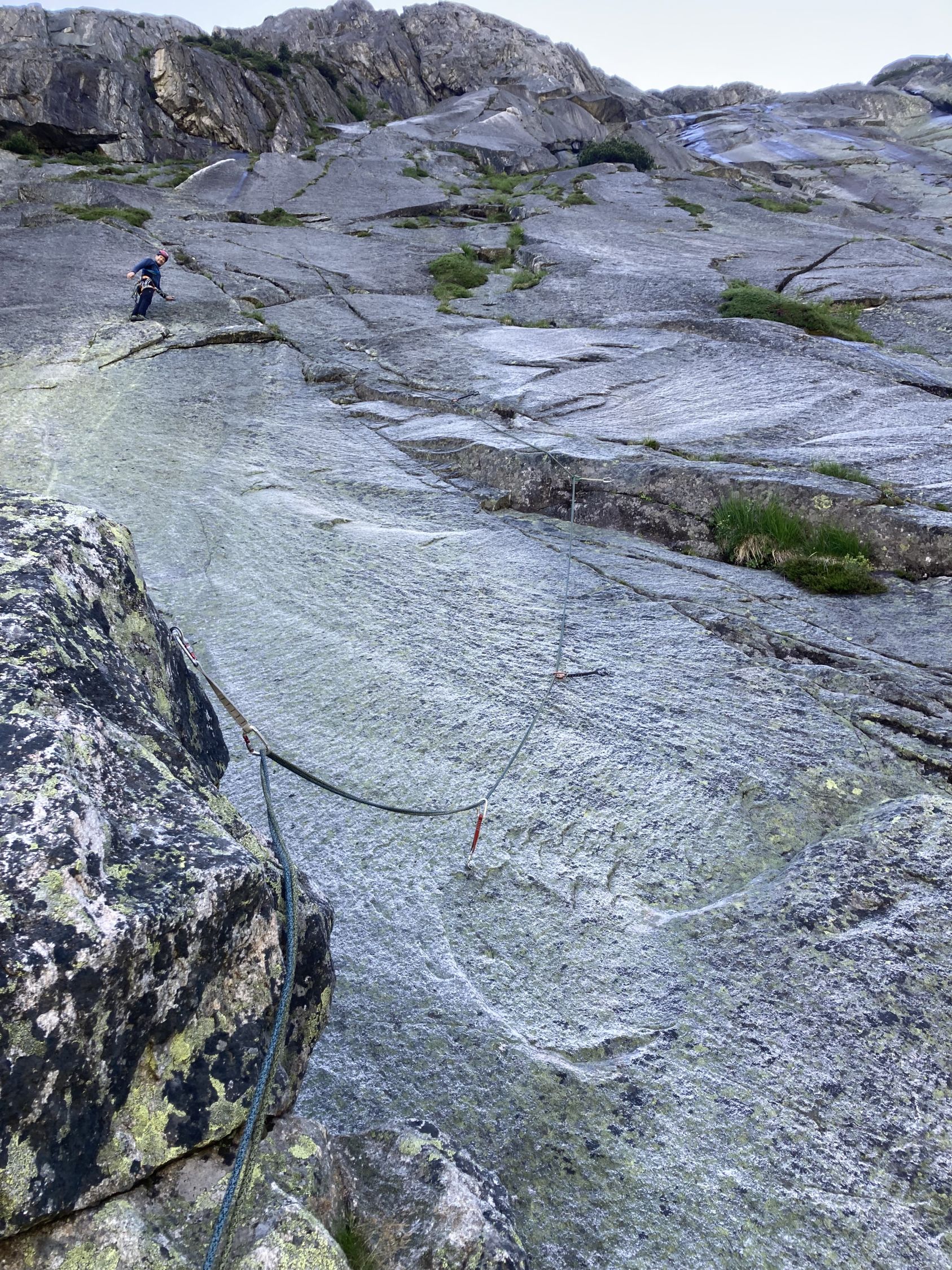 Sehr sehr schöne Route mit auch tollen Rissen (in "Schwarze Kante" sowie "30m Riss") neben den plattigen Stellen.