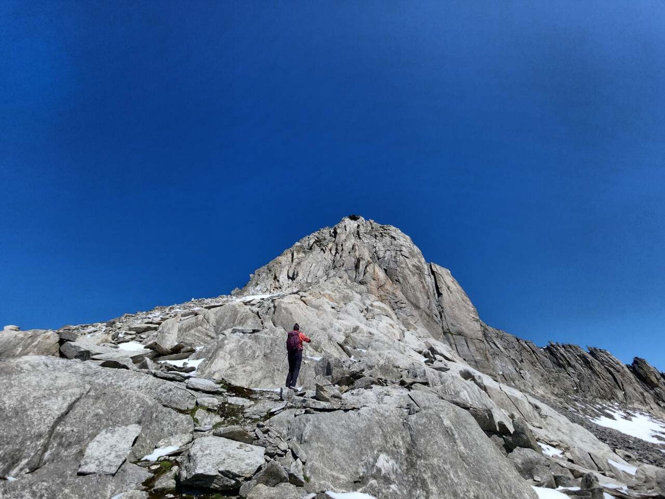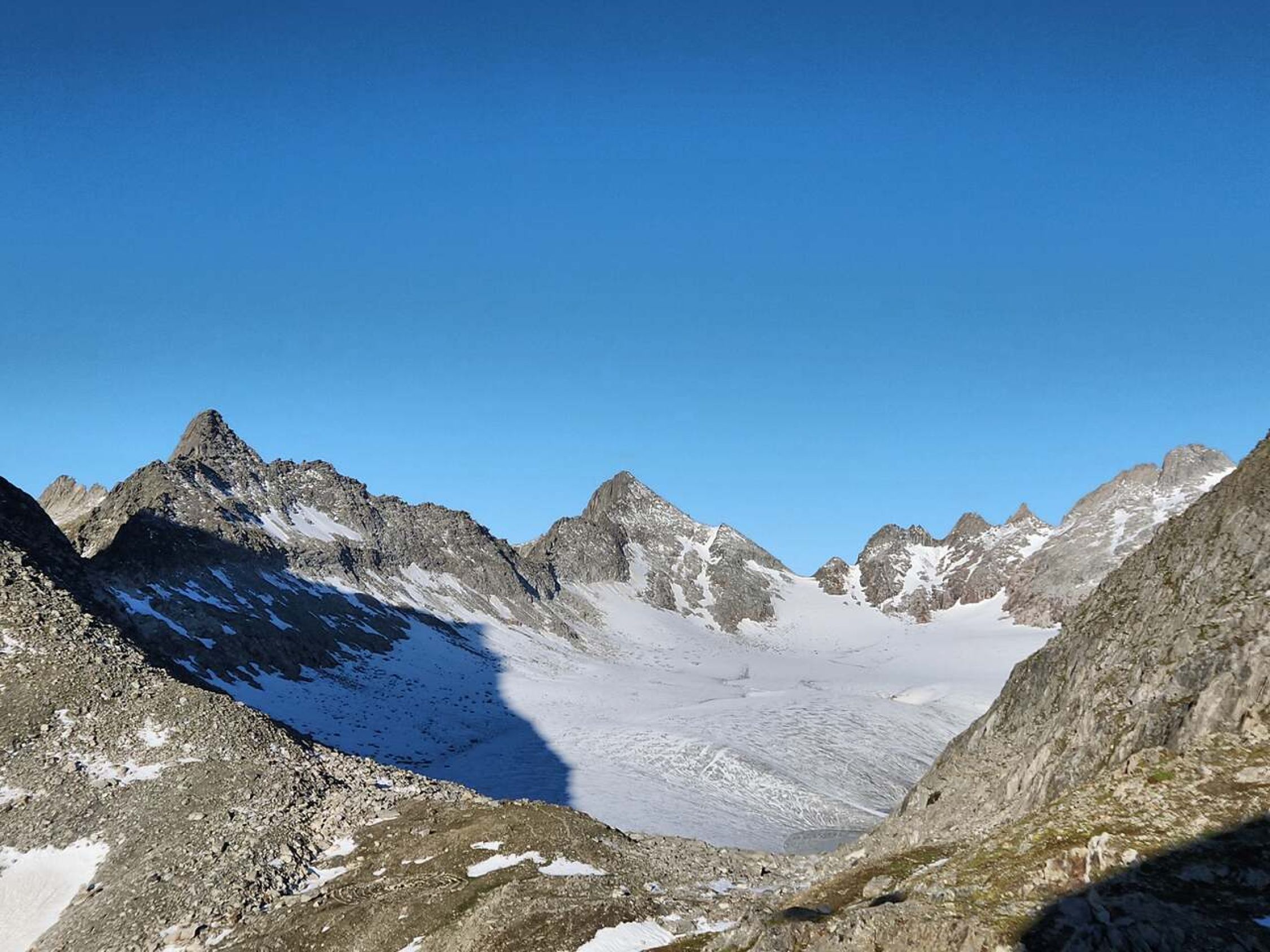 Aufstieg von der Cavardirashütte zur oberen Stremlücke dank dünner Schneeauflage perfekt. Blockgrat wunderbar zu begehen.