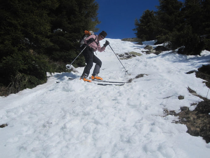 Beim Start an der Sustenstrasse um 6.30 Uhr +5°. Am Morgen war es zuerst noch leicht bedeckt, darum eher schlechte Abstrahlung vor allem in Wald. Oberhalb der Waldgrenze Schneedecke tragend.