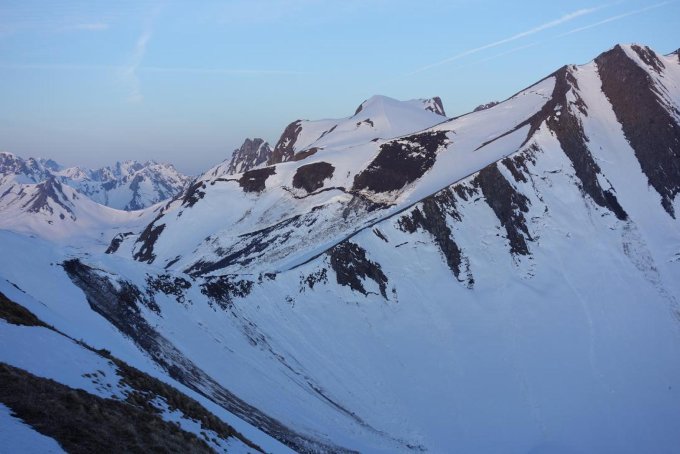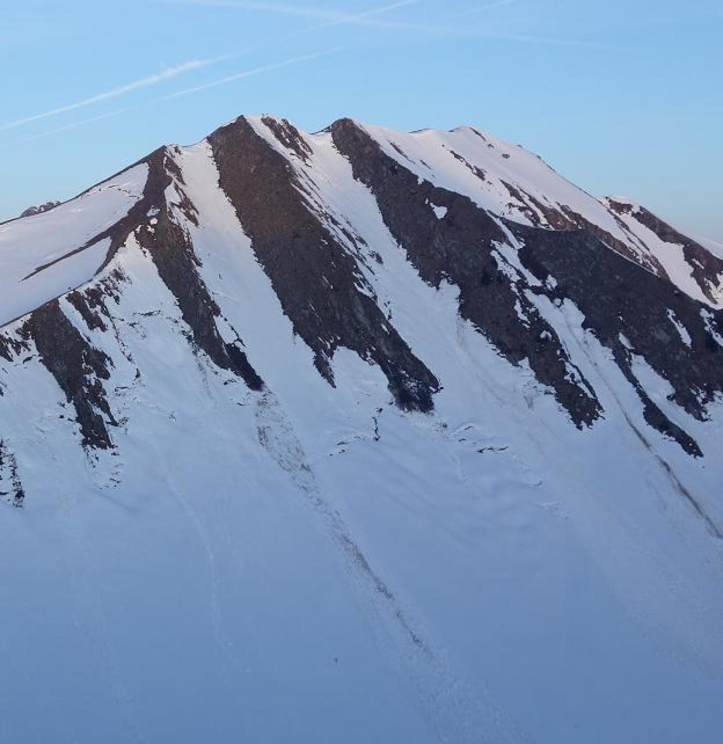 Schibespitz NW-Flanke: von riesigen Gleitschneerutschen durchzogen.
