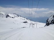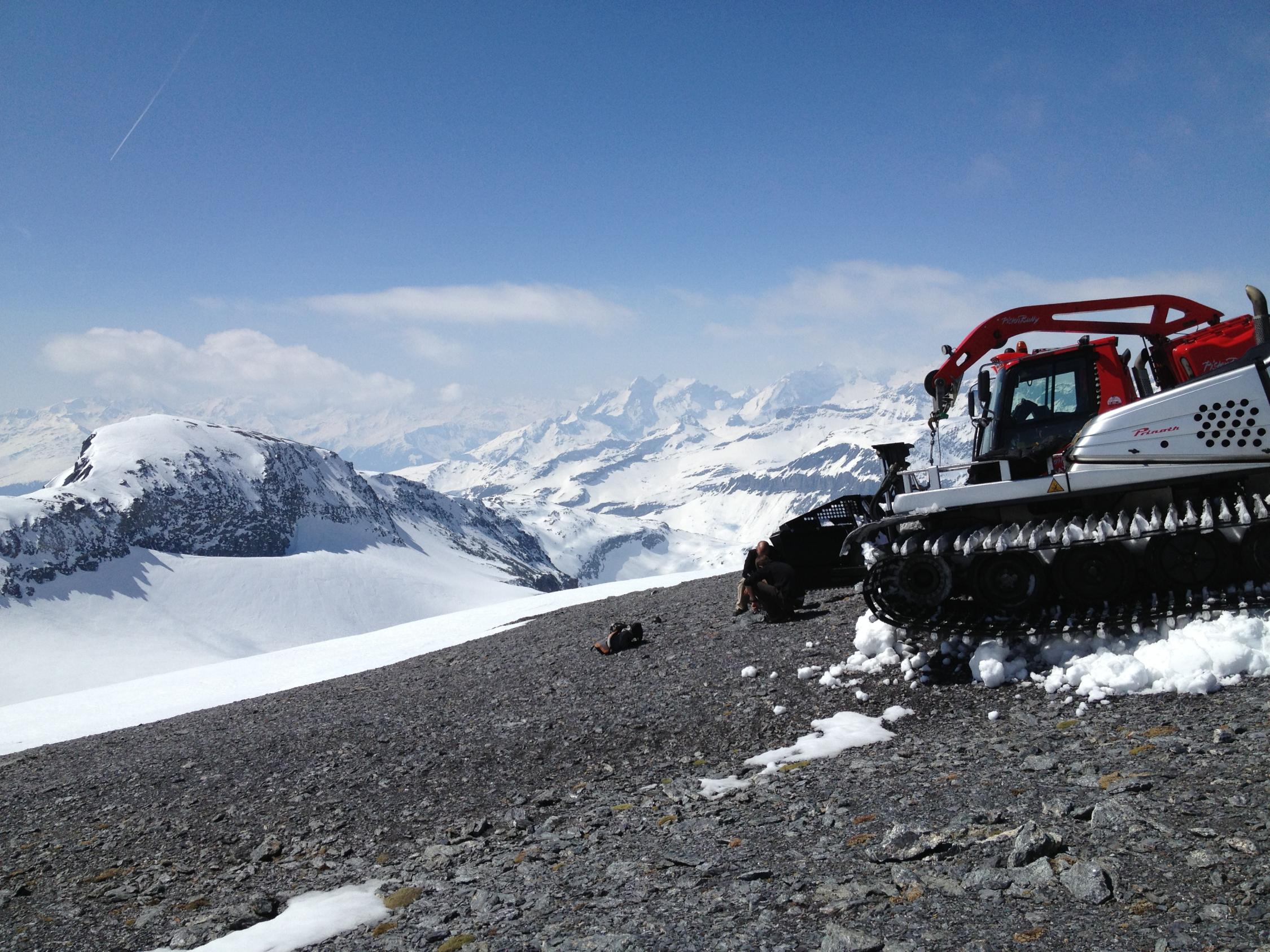 Neben der Spur des Pistenfahrzeugs war der Schnee erst ab Höhe 2800 tragend.