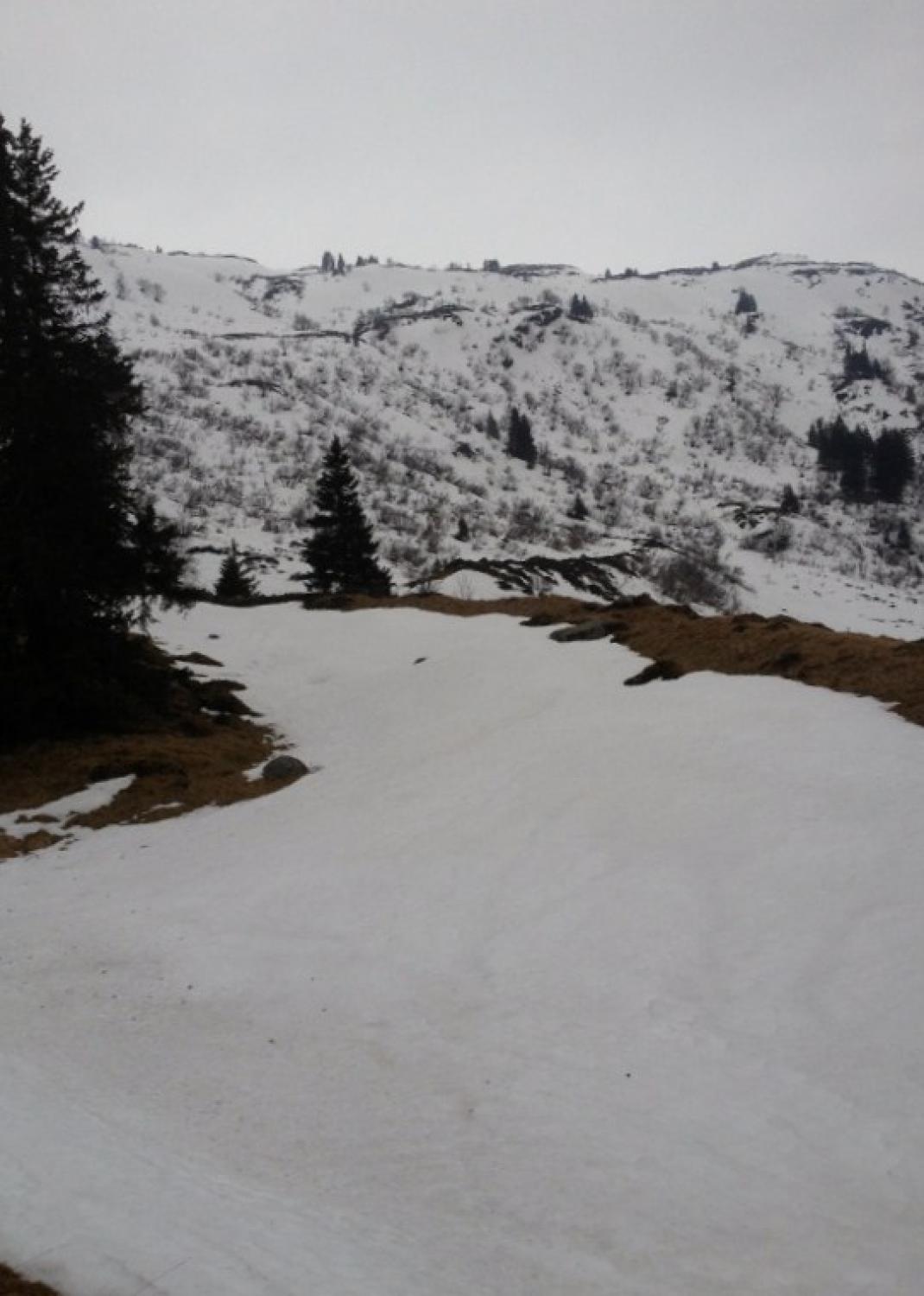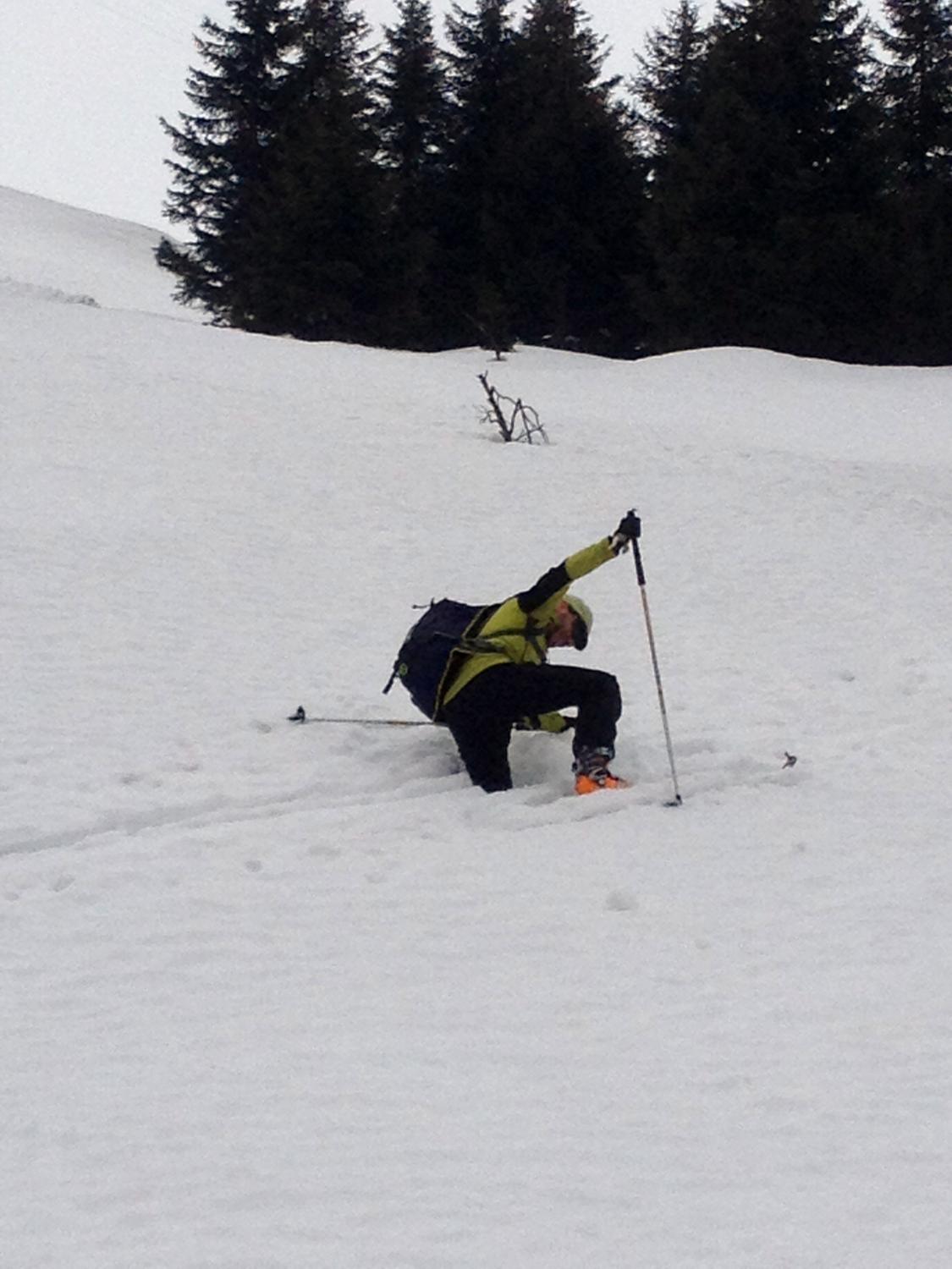 Bedeckter Himmel, dichter Nebel ab 2100m, noch genügend Schnee ab Start beim Talstafel, Schnee teils gut gesetzt, teils sehr tief, allgemein gut fahrbar