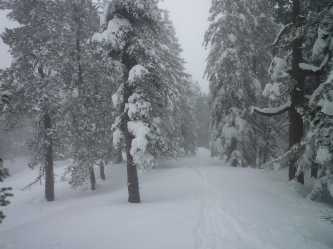 Neuschnee ab Langis, Militärstrasse bis zum Abzweiz frei. Im Wald durchfeuchteter, gesetzter Nassschnee, oberhalb der Waldgrenze Bruchharsch vom feinsten. Gipfelgrat teilweise ohne Schnee.