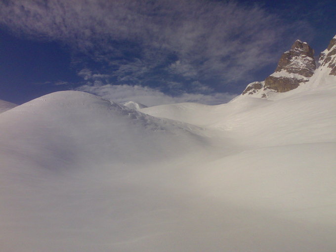 Die Hänge bis zu den Nidegghütten waren vorgestern sicher aper. Ca.20cm verregneten Neuschnee angetroffen. Bis kurz vor Grimmifurggi sehr schwerer Neuschnee teilweise mit Deckel. Ab Grimmifurggi bis Gipfel Windharst gerade noch fahrbar wenn sanft gedreht wurde. Die Schneeverhältnisse waren heute sicher kein Leckerbissen.