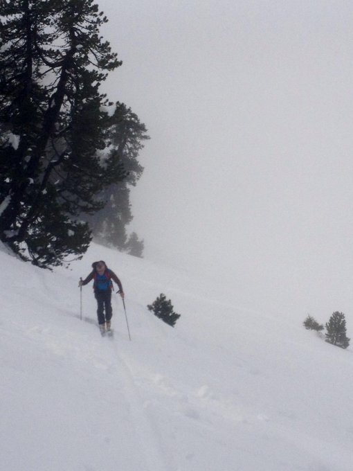 Wider Erwarten auf dem Gipfel Sonne, sonst unter oder im Nebel, viel nasser Neuschnee, ordentlich zu fahren.
