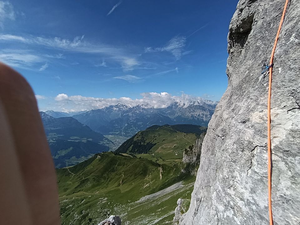 schöne "freestyle" Mehrseillänge geklettert. Gewisse stände waren überflüssig. Zustieg war auch sehr abenteuerlich, fernab des Weges. Aber ein super tolles Abenteuer