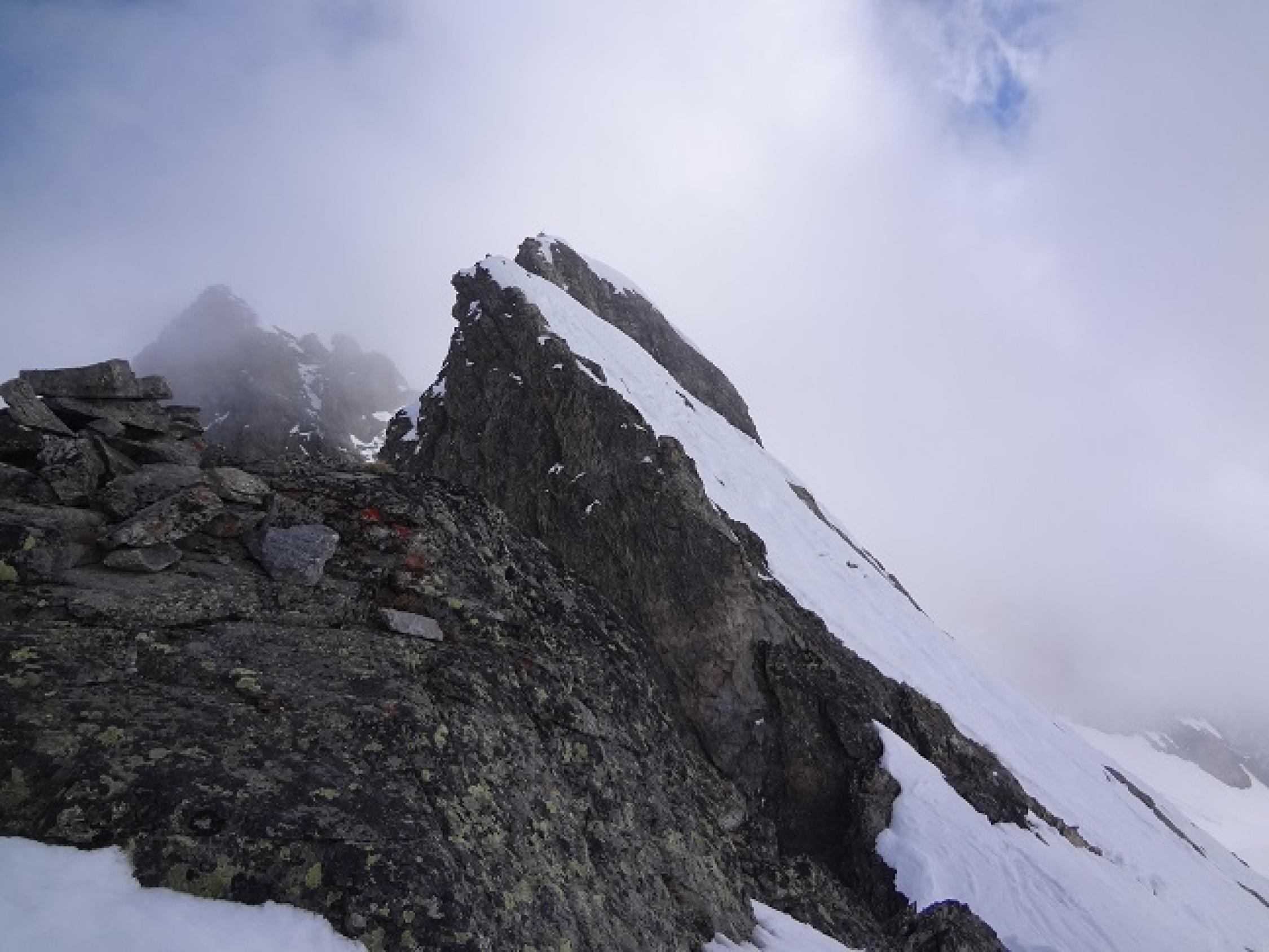 Am Gipfelgrat noch ziemlich viel Trittschnee.