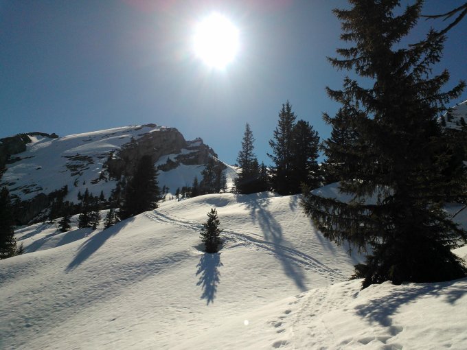 Ein wunderbarer Frühlingstag. Skis können mit ganz kurzen Tragestrecken immer noch beim Baggerunternehmen hinter Grimmialp angezogen werden. Aufstieg entsprechend problemlos. Schneedecke aufgrund der doch hohen Temperatur bis ca 1800 MüM nicht tragfähig gefroren, darüber idealer Firn. Die Abfahrt bot dementsprechend erst schöne Firnschwünge, danach gut schwingbaren Nassschnee. Wir waren beinahe allein, ein Tourengänger ist aufs Rauflihorn gegangen und hat es sicher auch genossen, diesen Berg mal für sich zu haben...