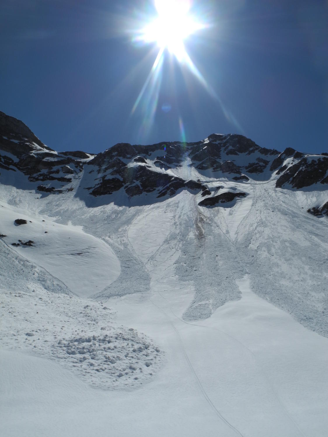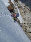 sehr viel unten,hängt aber noch einiges.grosser gleitschneerutsch in wand.