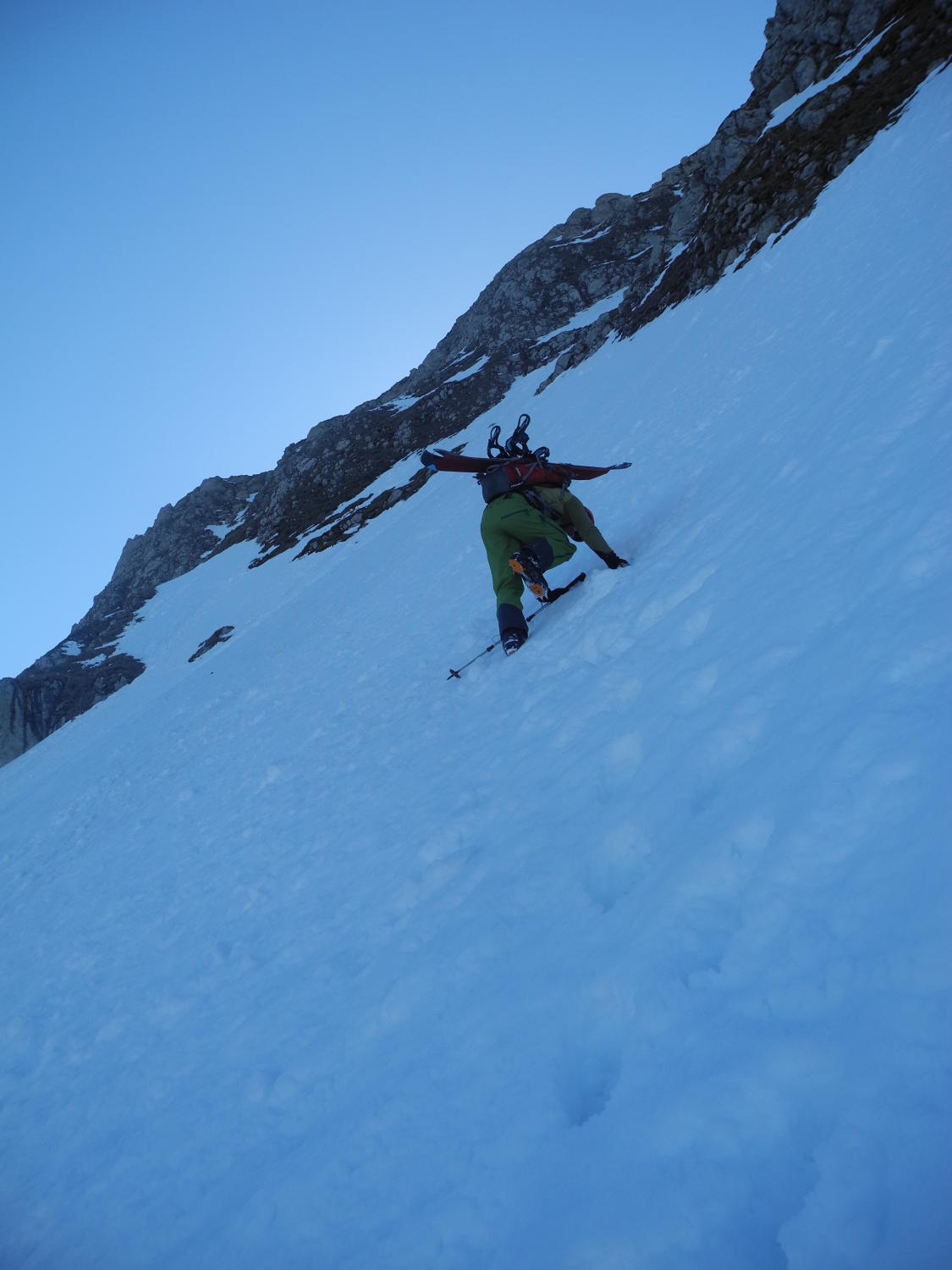 unten schon am morgen keine abstrahlung,ab alp leicht und in wand recht hart und tragend.leider für abfahrt trotz warten bis kurz vor mittag keine verbesserung(halt nord),knüpelhart für runter,unten raus erst bruchharstig dann tiefer gut zu fahrender sulz.