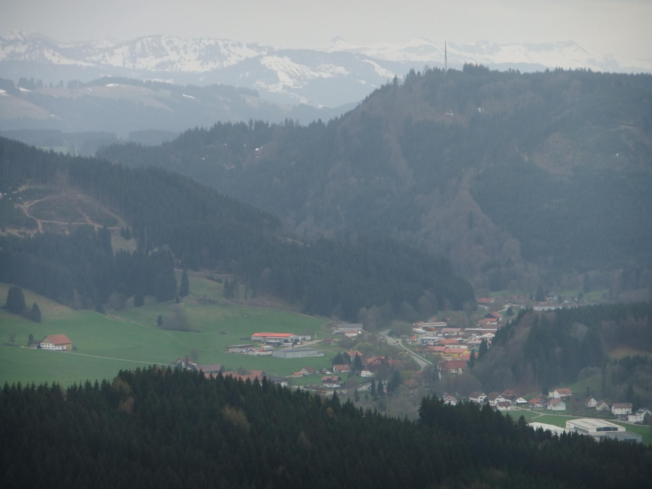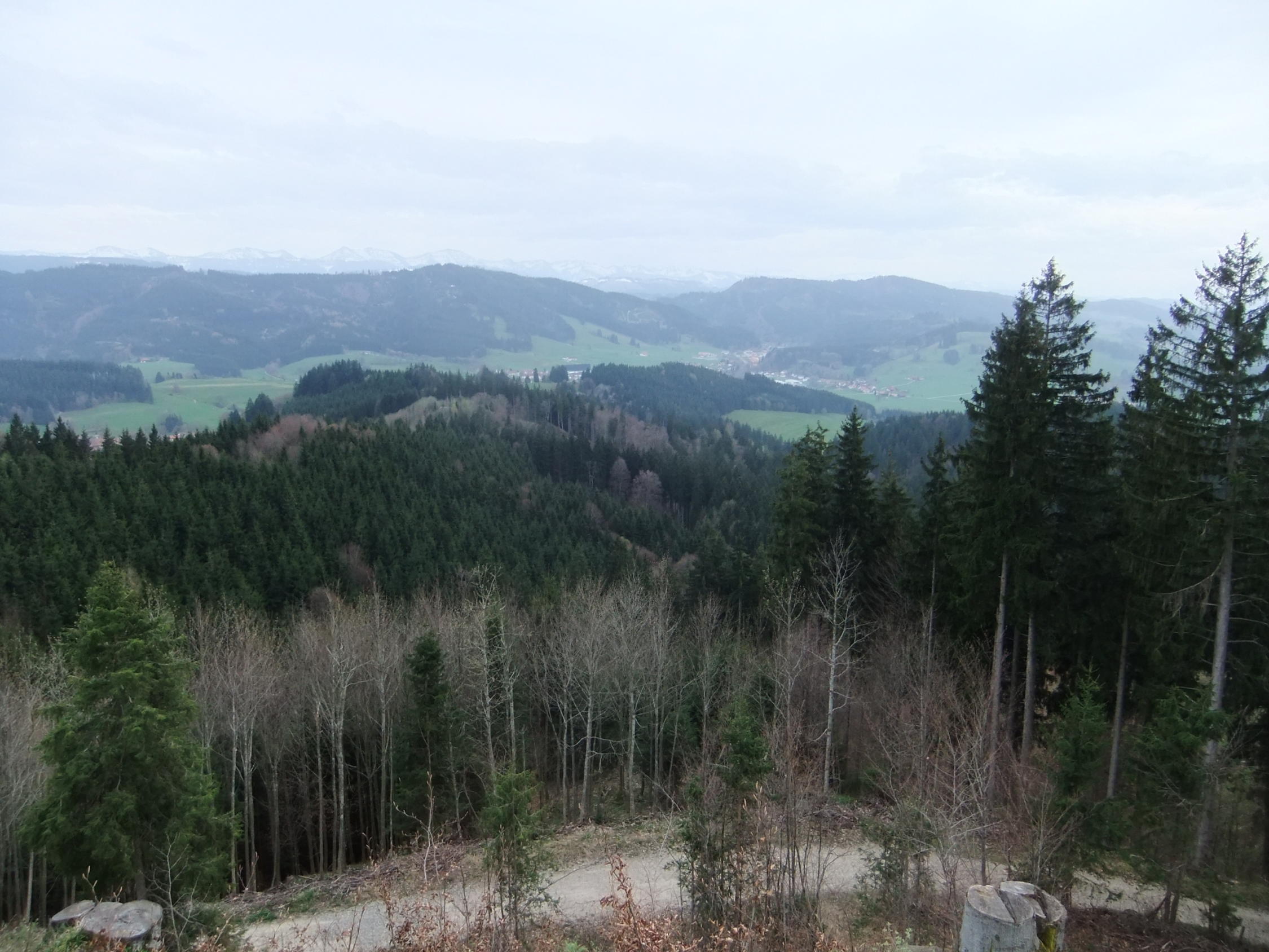 Blick auf die Allgäuer Alpen im Süden, weite Teile Oberschwabens und bei guter Sicht bis zum Bodensee.