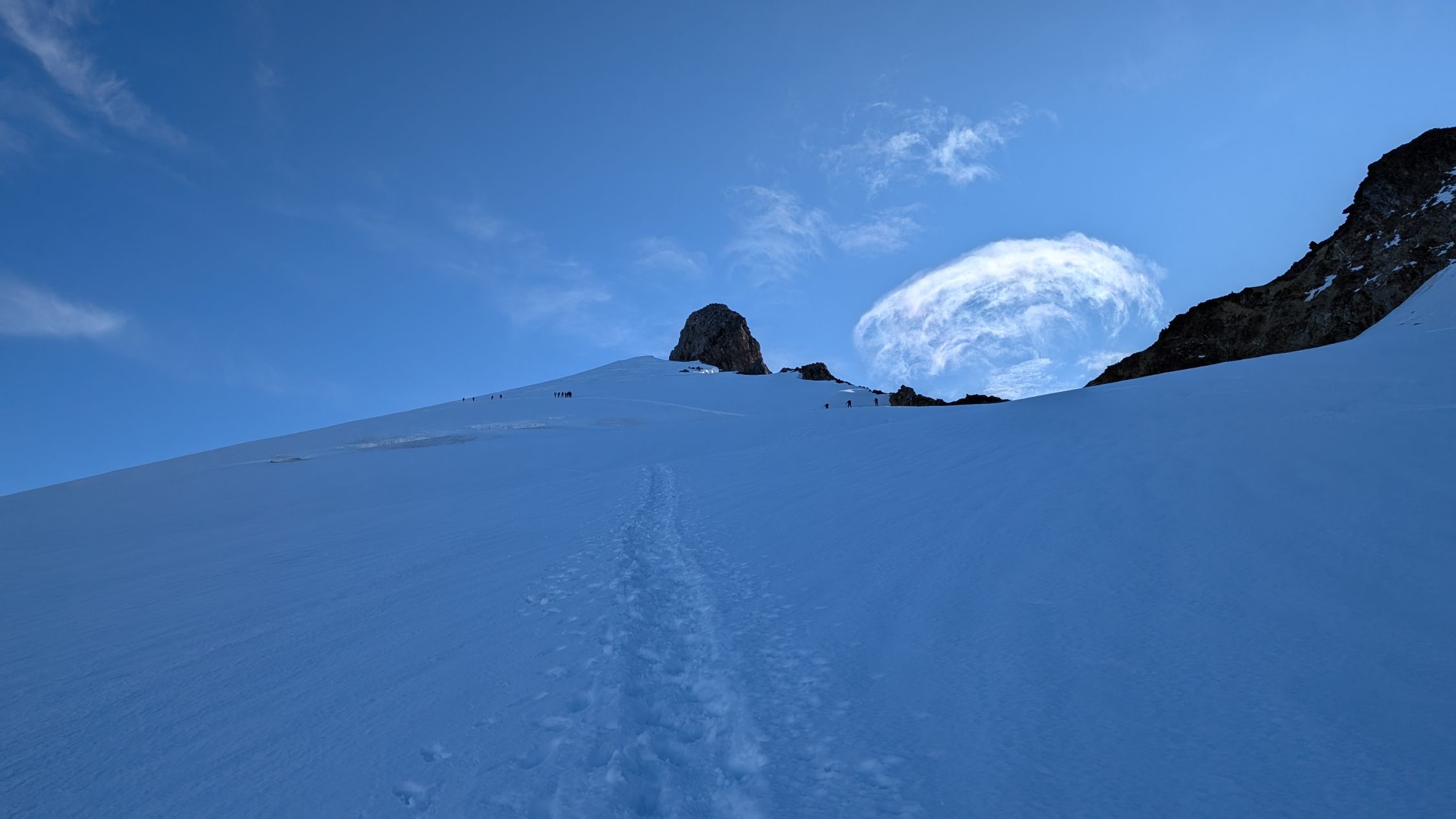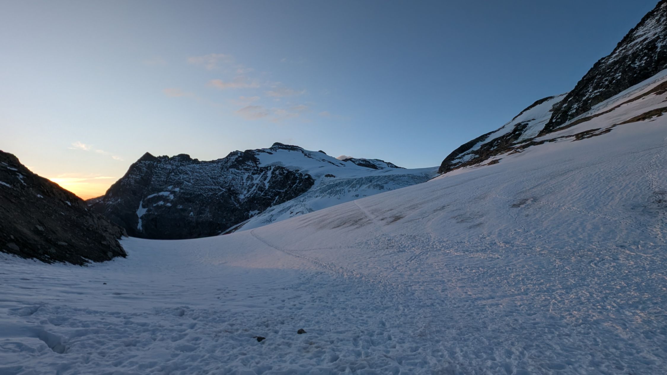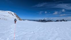 Mit den angekündigten wärmeren Temperaturen steigt die Spaltensturzgefahr. Der Firn kann sich sicher noch einige Zeit halten.