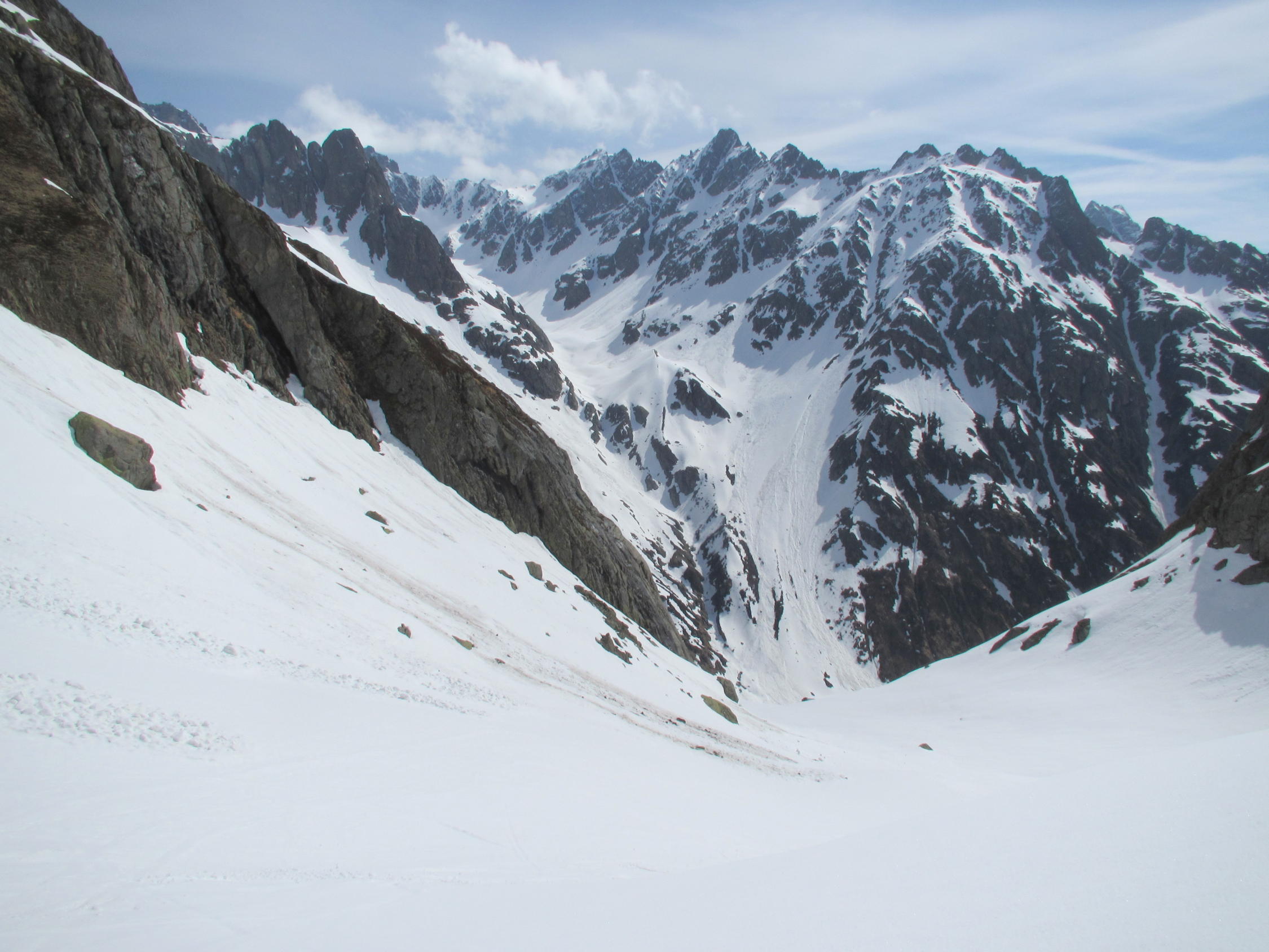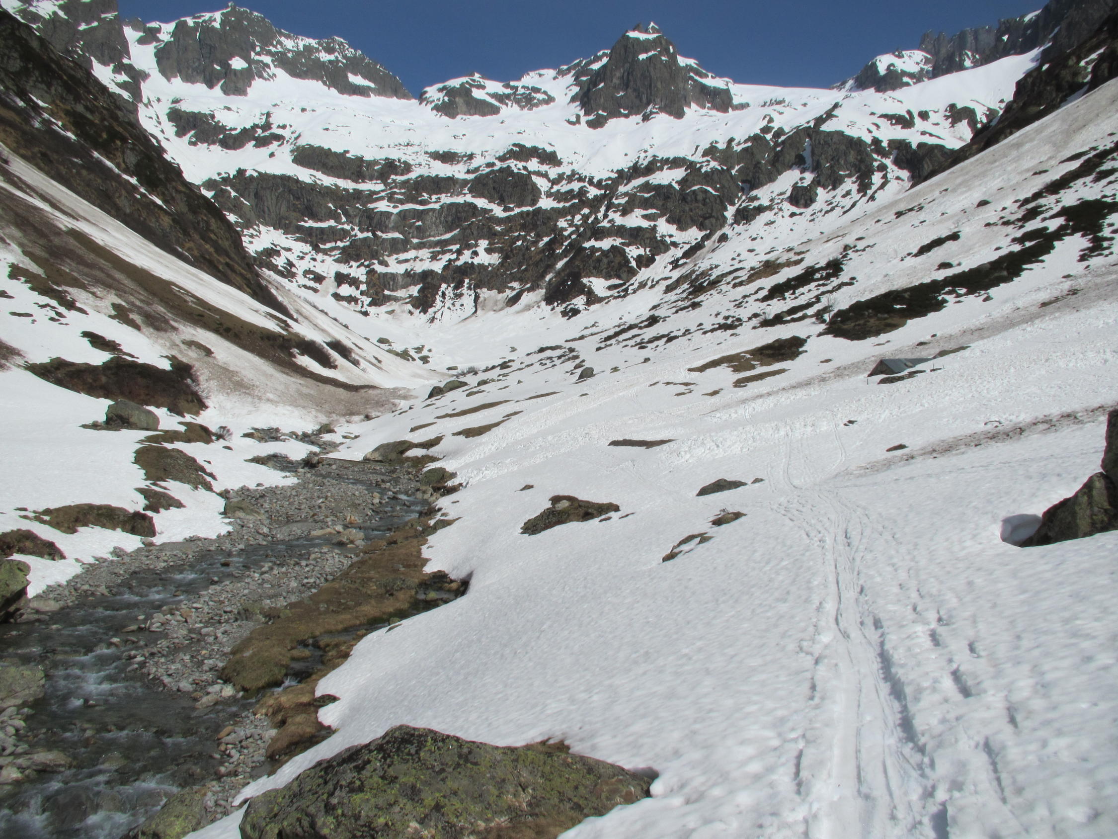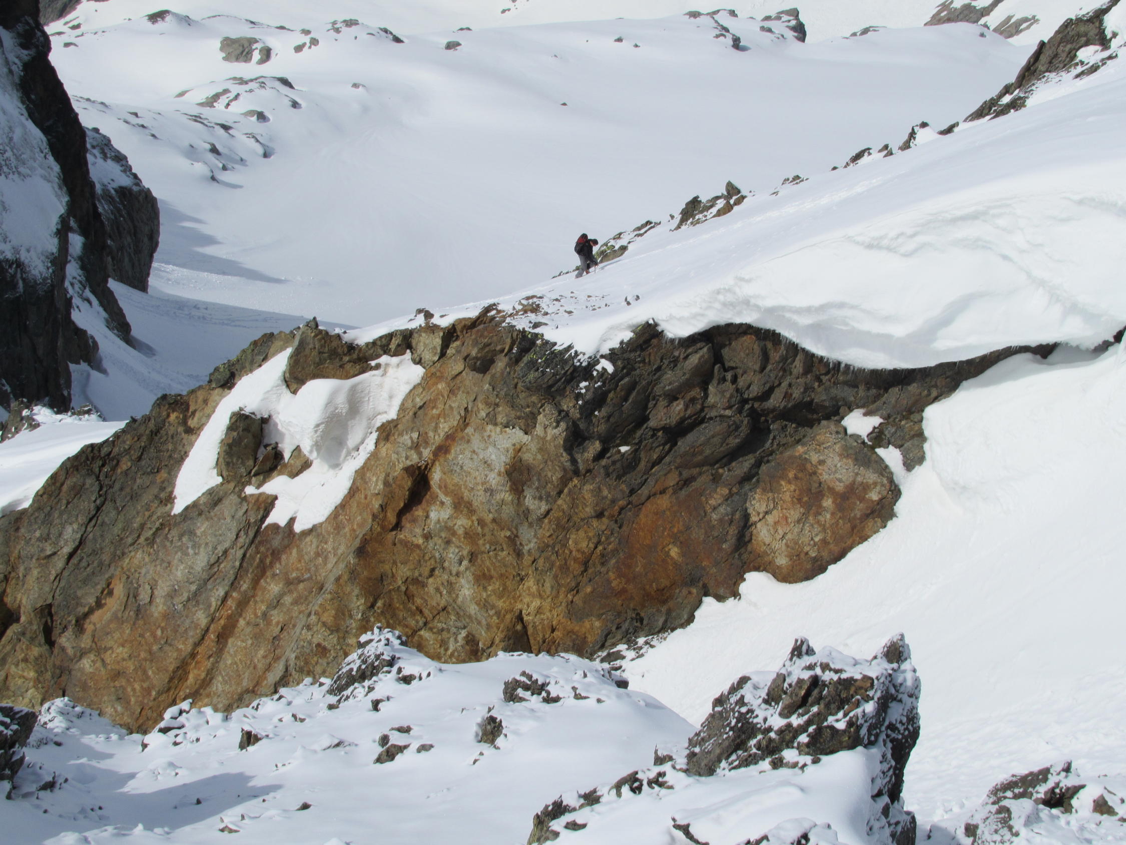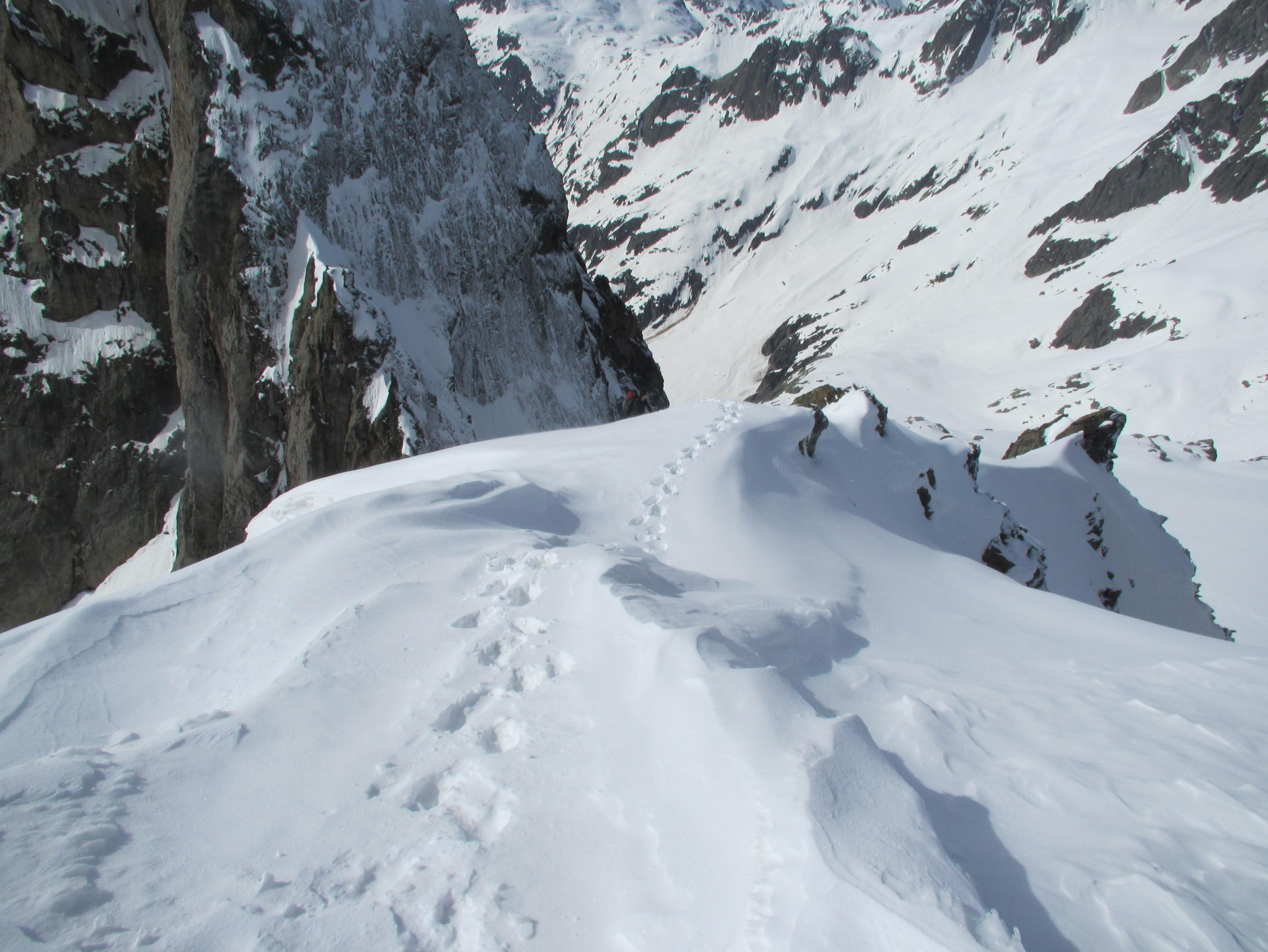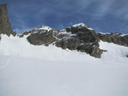 Achtung auf den Bergschrund unter dem namenlosen Sattel zwischen Wichelplangg und Stössenstock.