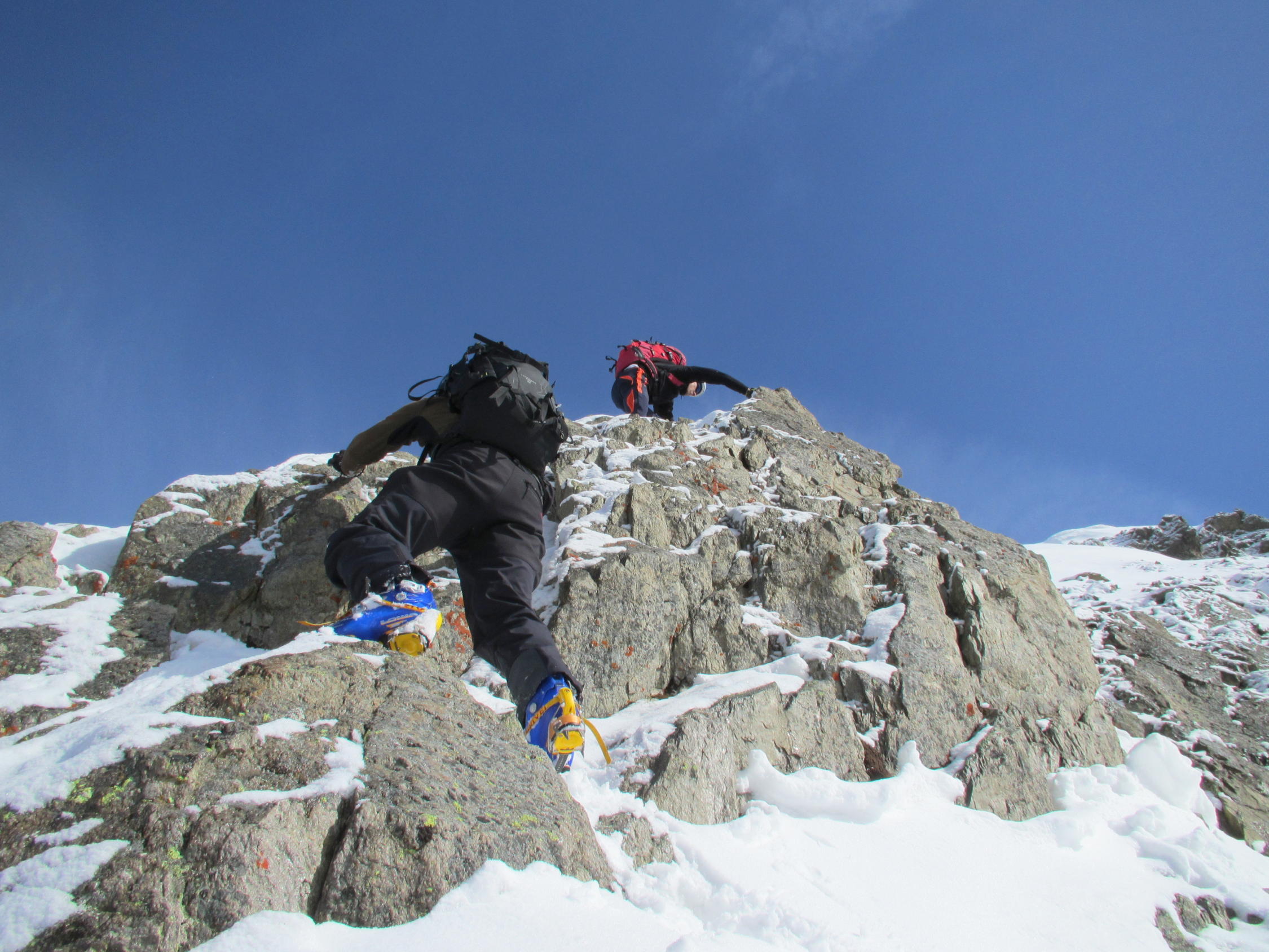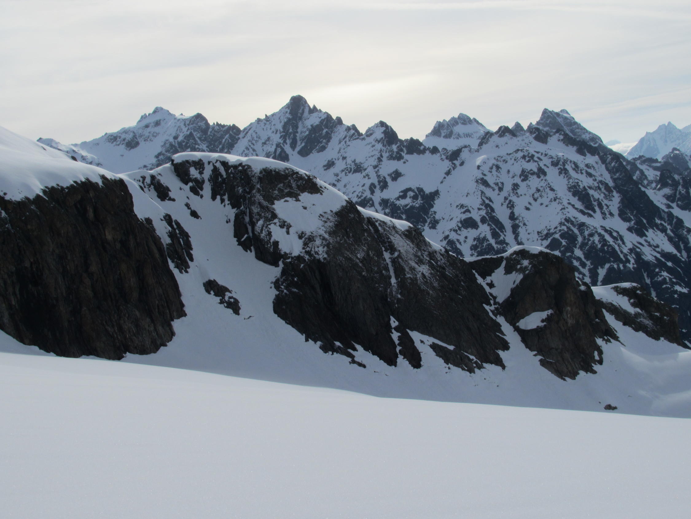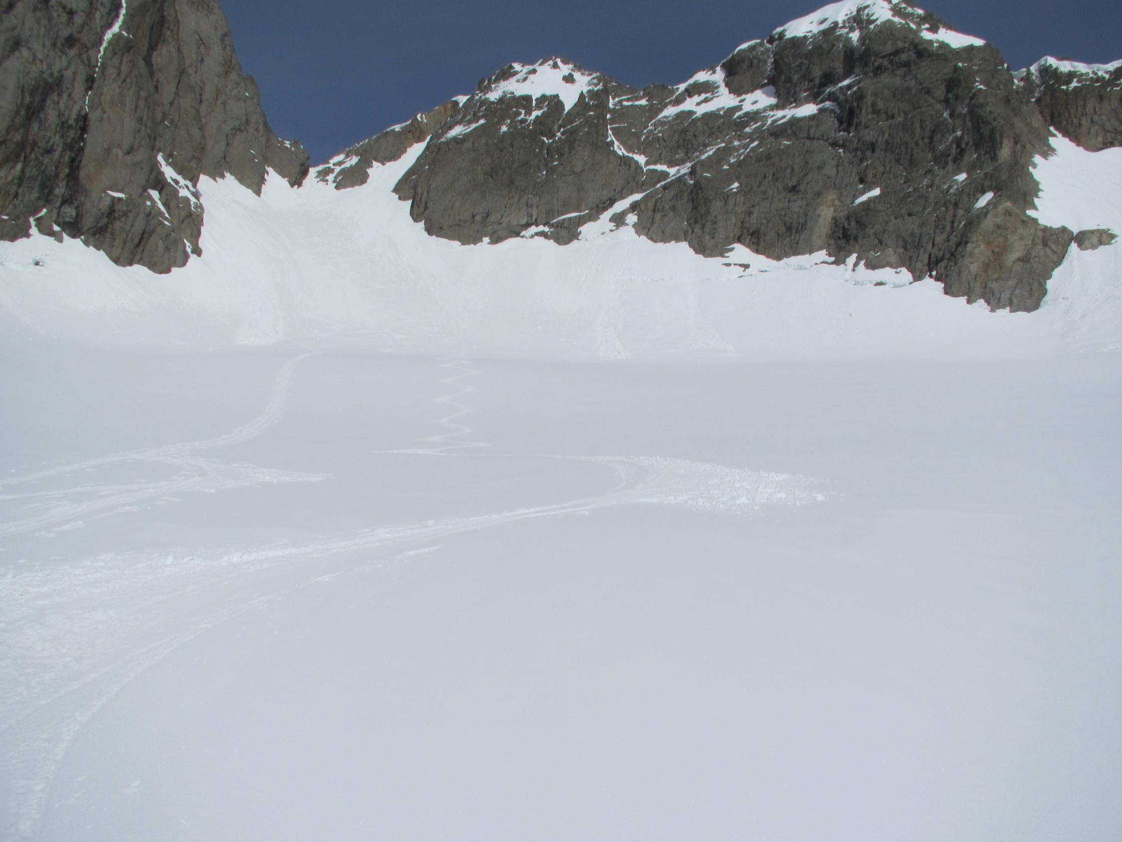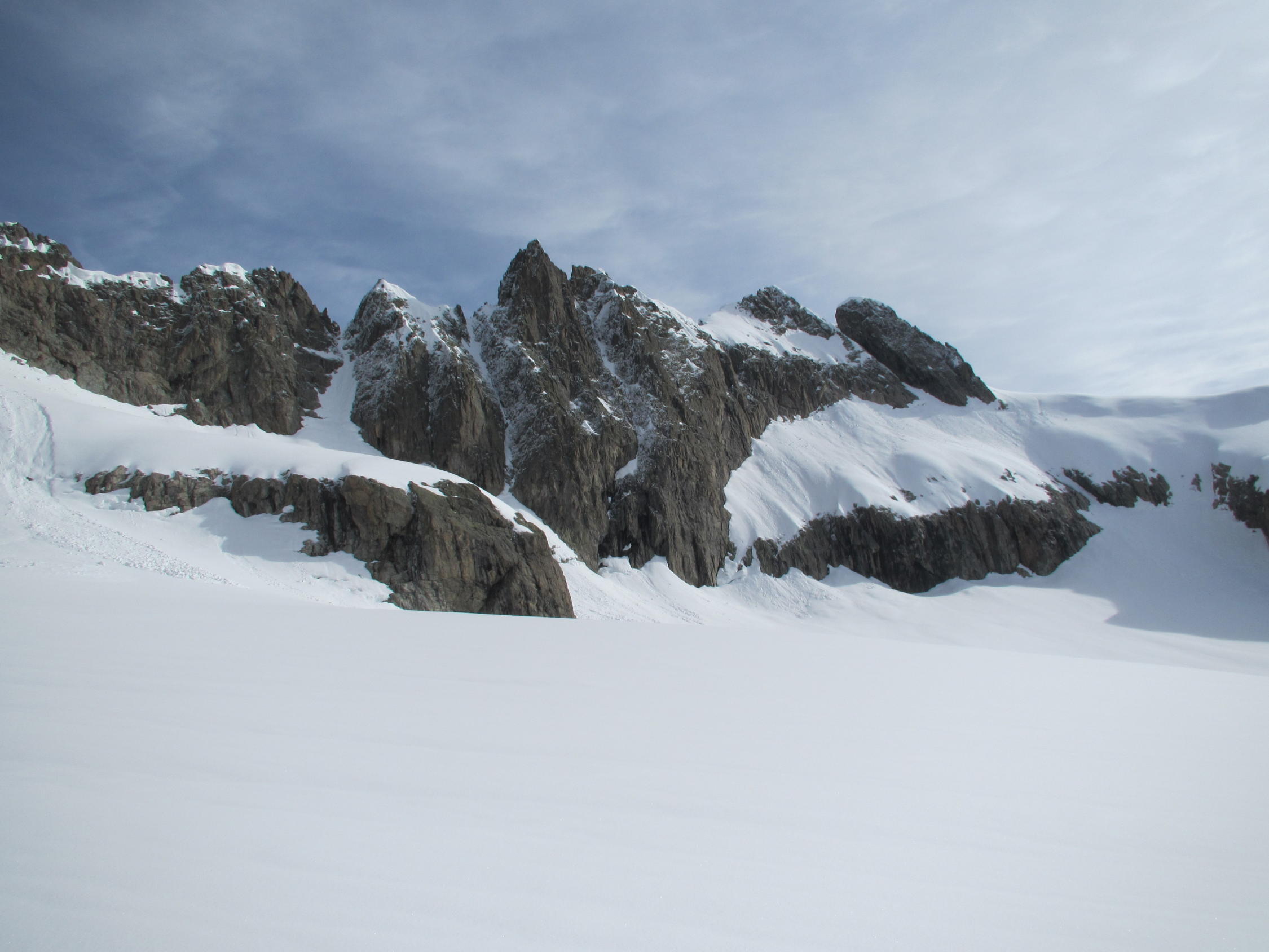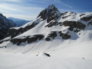 Achtung auf den Bergschrund unter dem namenlosen Sattel zwischen Wichelplangg und Stössenstock.