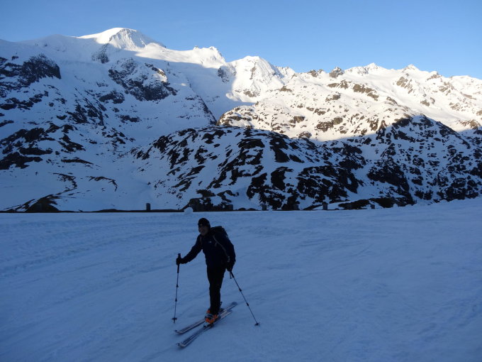 1. Aufschwung ab Steingletscher früh morgens hart. Harscheisen unerlässlich. Weiter oben gute Spur bis zum Gipfel