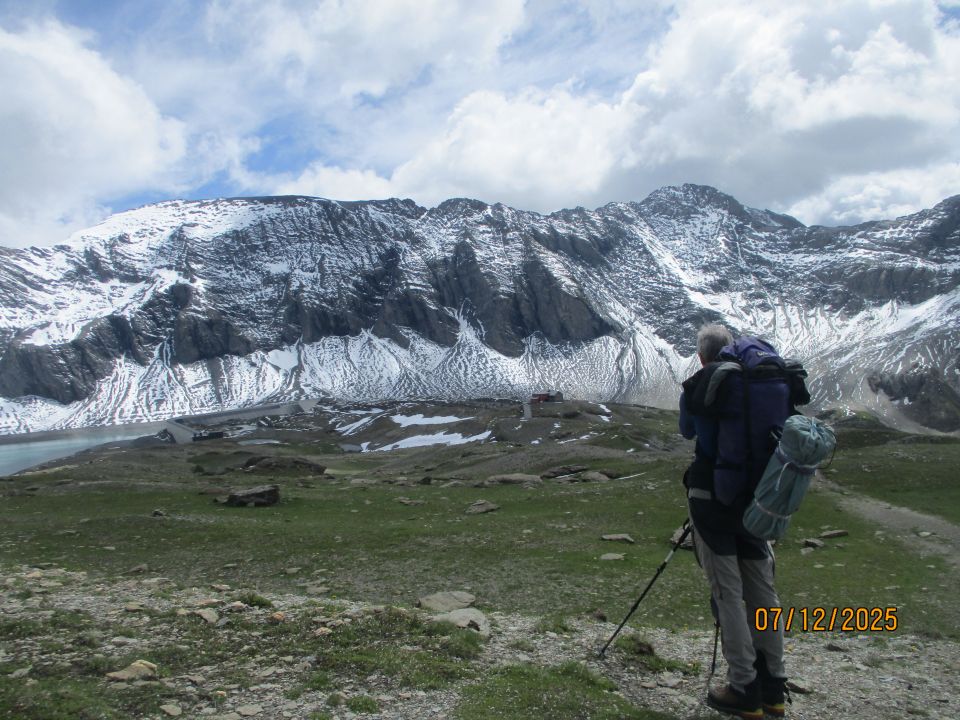 Sonntag: bereits über Nacht erging ein erster Regenschauer. Von der Früh an war es wechselhaft, mit raschen Wolkenaufzügen und kleineren Schauern, danach wieder sonnig. Insgesamt kein geeignetes Wetter für längere oder technisch anspruchsvolle Gipfeltouren. Da wir ja bereits am Vortag auf dem Gipfel waren, konnten wir es gemächlich angehen. Frühstücken, zusammenpacken und gemütliches Zurückwandern zur Bergstation.