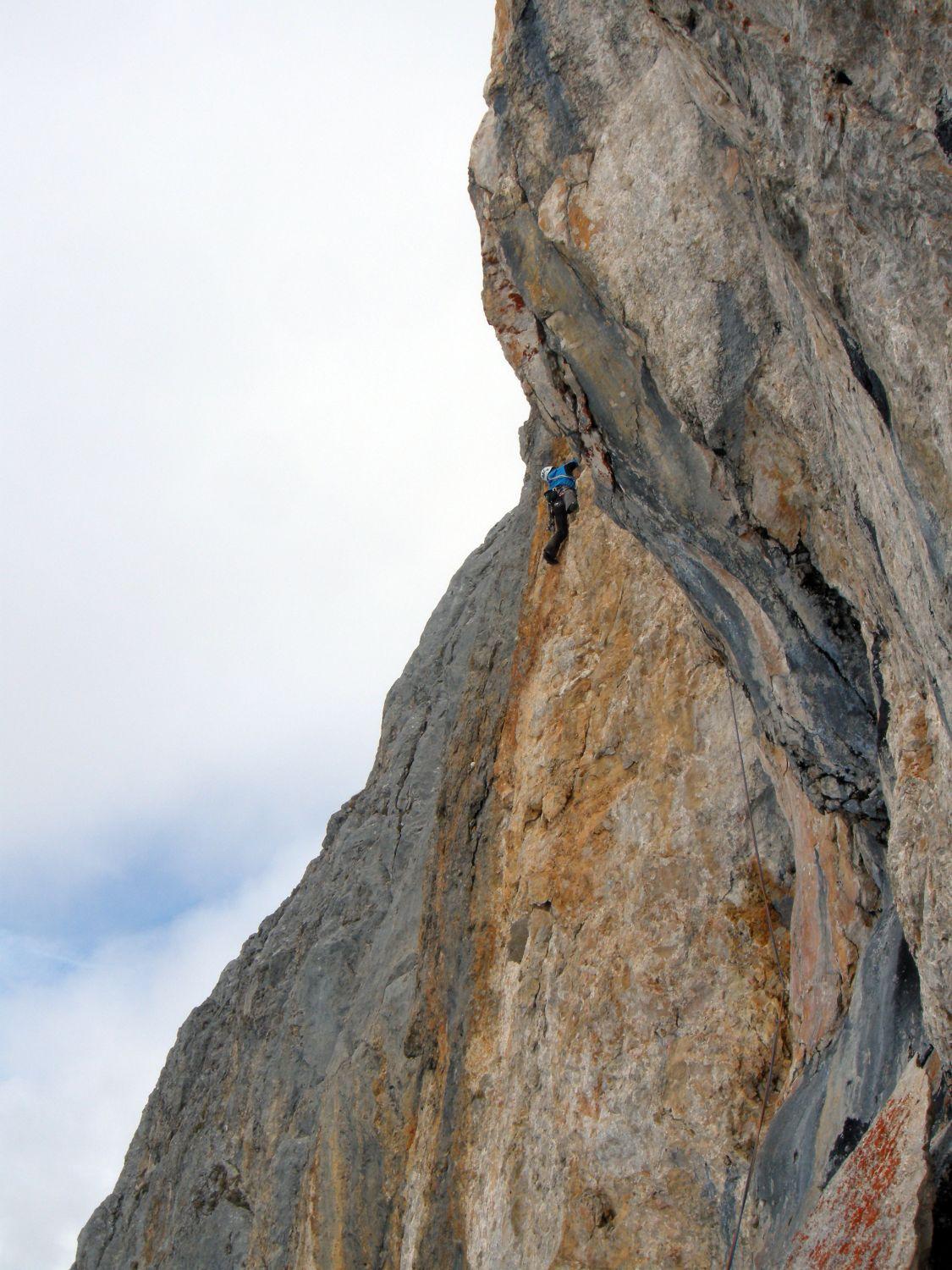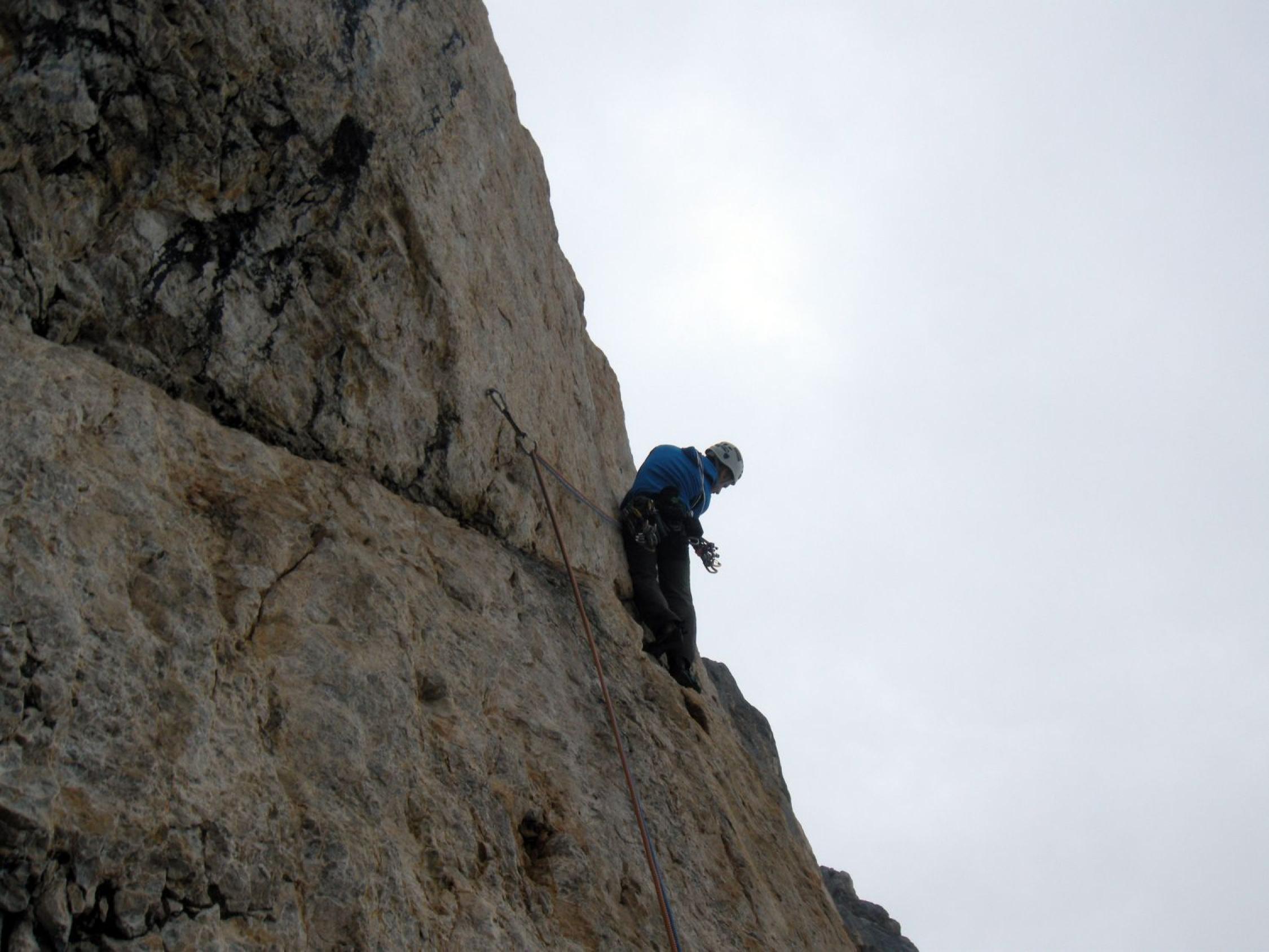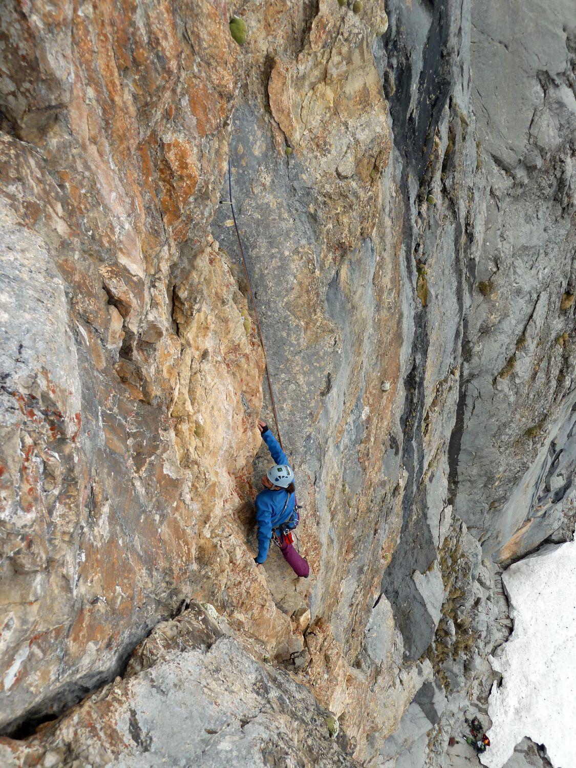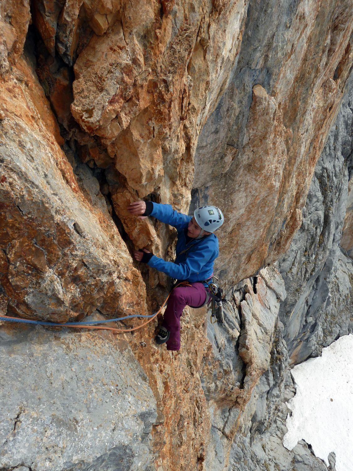 Schon sehr gute Verhältnisse in den Wänden von Schüsselkarspitze und Scharnitzspitze. Insgesamt waren 5 Seilschaften unterwegs zumindestens mit Zustieg über die Wangalm. Aus dem Puittal evtl. noch weitere. Es wurden Knapp-Köchler, Wolke 7 und soweit ersichtlich die Südverschneidung geklettert.
