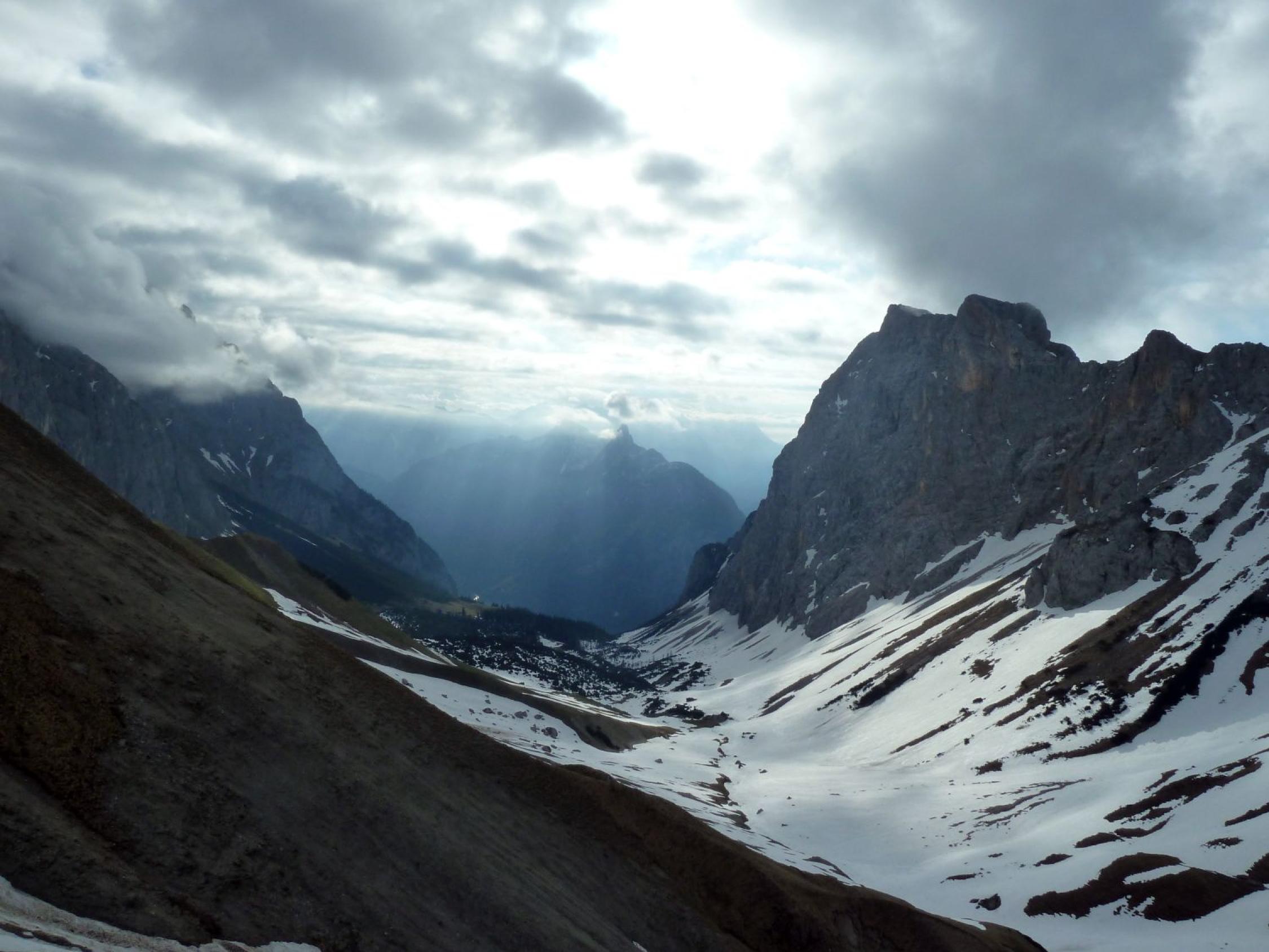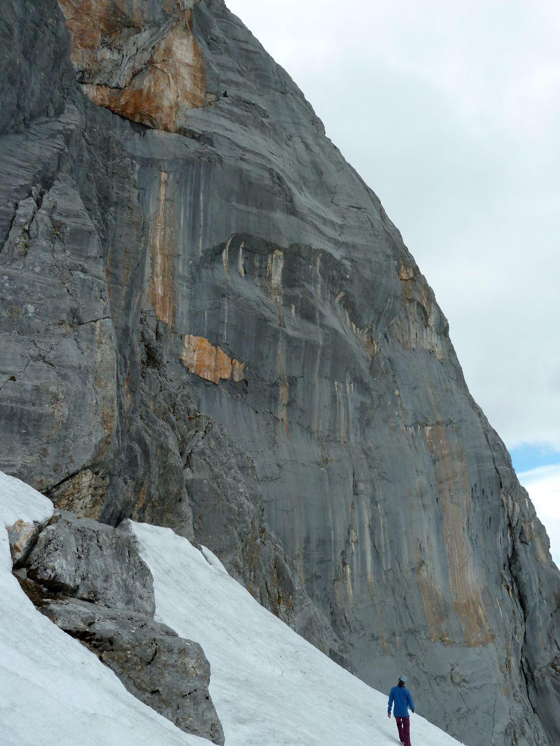 Zustieg über Wangalm und Scharnitzjoch nahezu schneefrei. Lediglich im Bereich des Gedenkstein und bei den Querungen zu den Einstiegen liegt noch Schnee. Im Puittal (siehe Bild) natürlich noch etwas mehr.