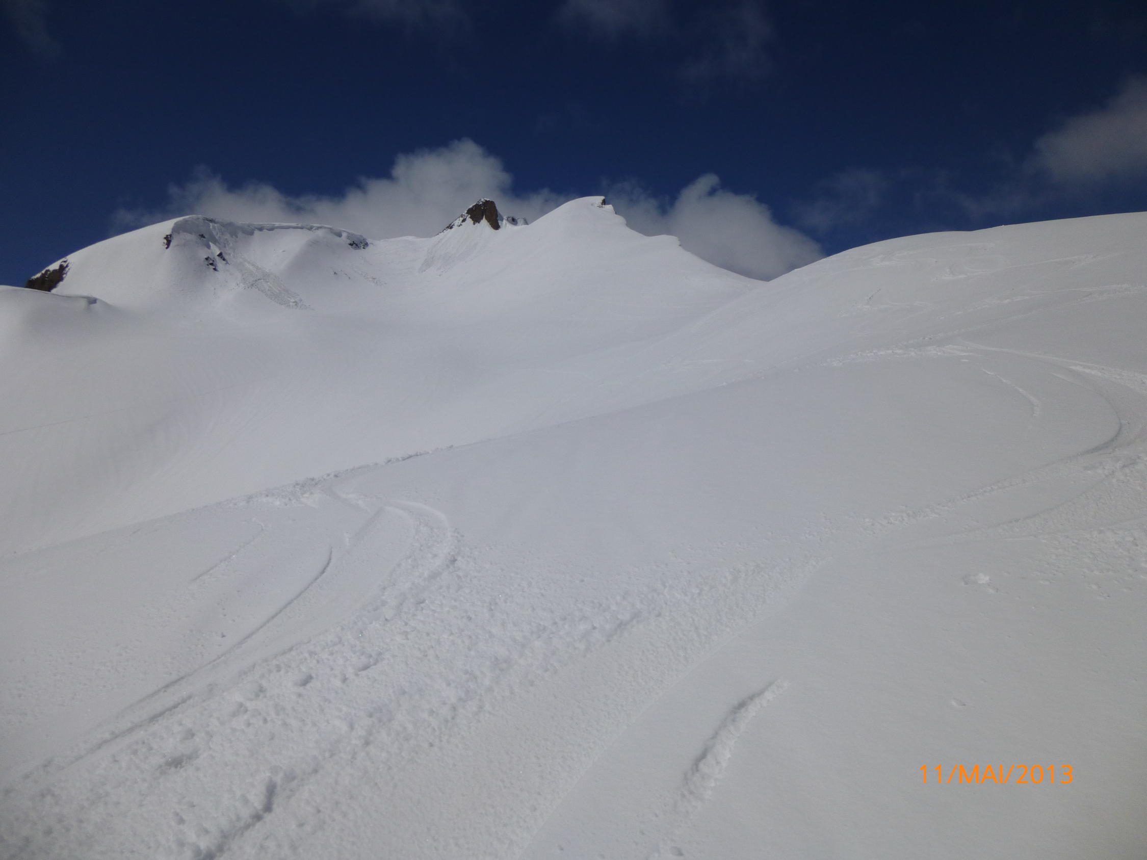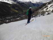 Bei Start in All Acqua um 6.15 wolkig ca.0°C.Schnee kompakt auch in der Abfahrt.Traumverhältnisse vom Helgenhorn bis Alp Val d Olgia.Super Sulz.
