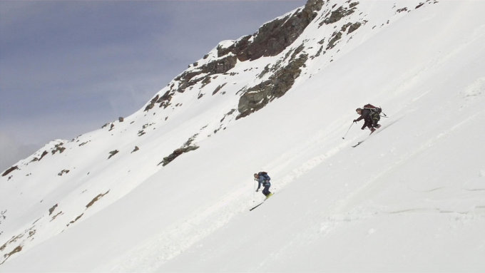 Abstieg: bedeckt aber gute pulvrig bis 3000m , denn Sonnenschein und fantastischen Firn bis ins Tal
