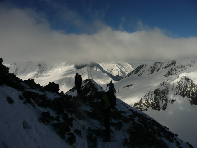 Wir sind erst um 6 Uhr gestartet - bei den Verhältnissen jedoch perfekt. 4 Stunden bis Hugisattel, nach 5 Stunden waren wir auf dem Gipfel. Der Wind hat auf dem Grat einige Schichten Kleider nötig gemacht. Immerhin konnten wir das Schönwetterfenster optimal nutzen.