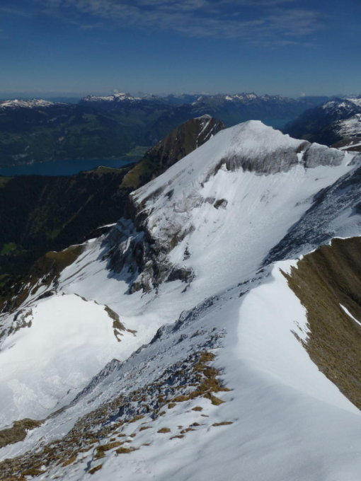 Portage unterhalb Obere Obersuld, kurz unterhalb Höchstbode, am Dreispitz durch N-Flanke und kurz am NE-Grat, am First kurz am S-Grat und kurz oben und unten an N-Flanke.