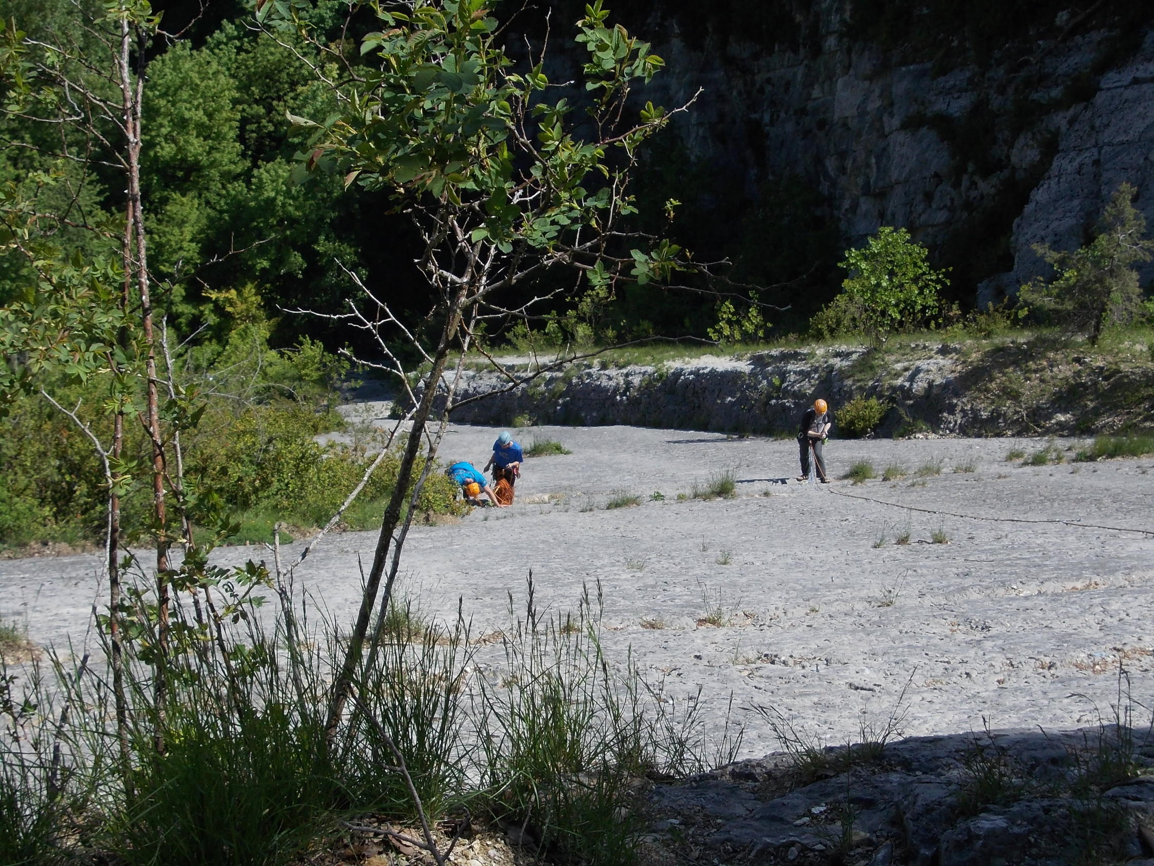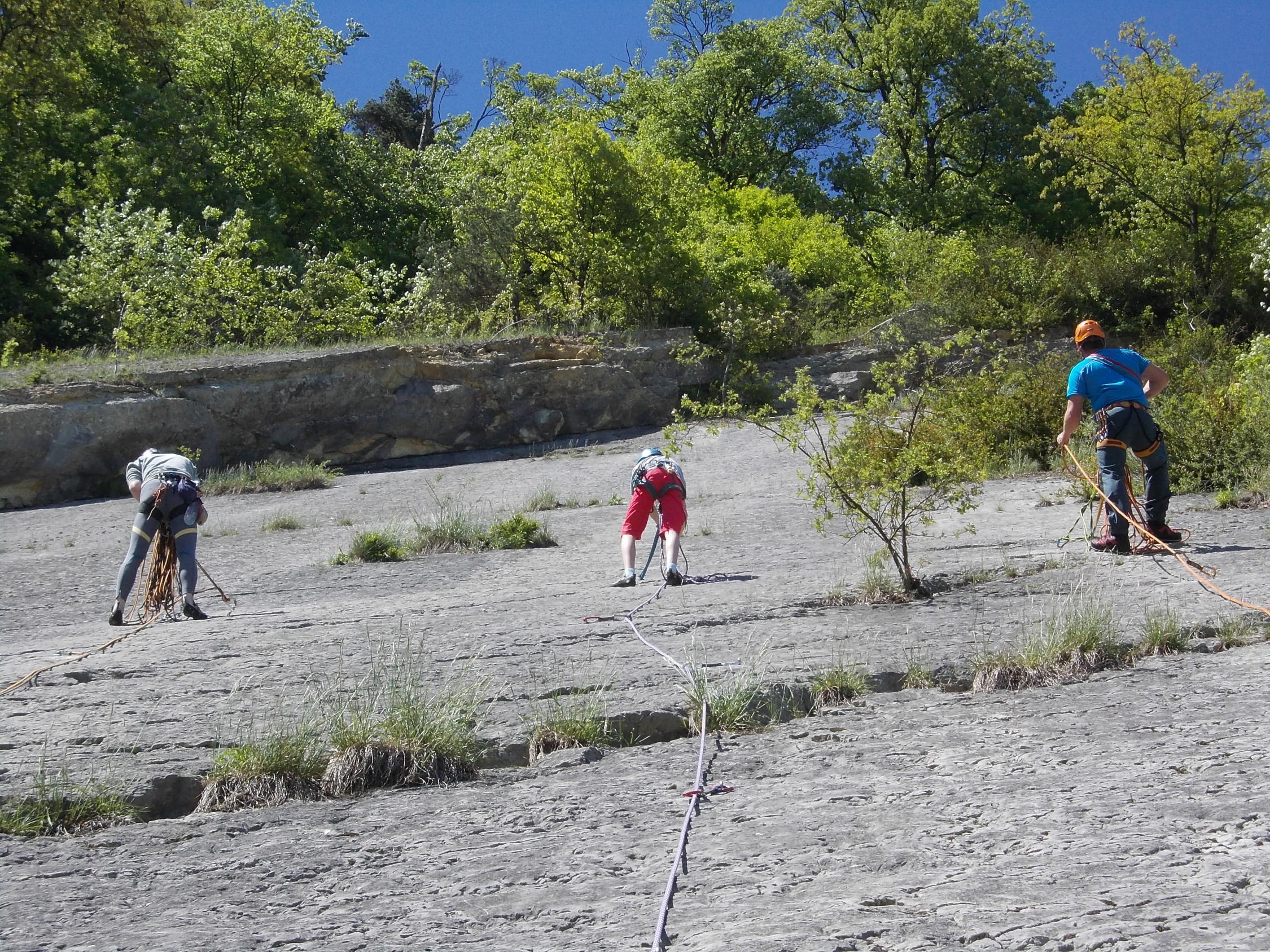 Abstieg: Zu Fuss in 15 Minuten, oder ueber die eingerichtete Abseil-Piste.