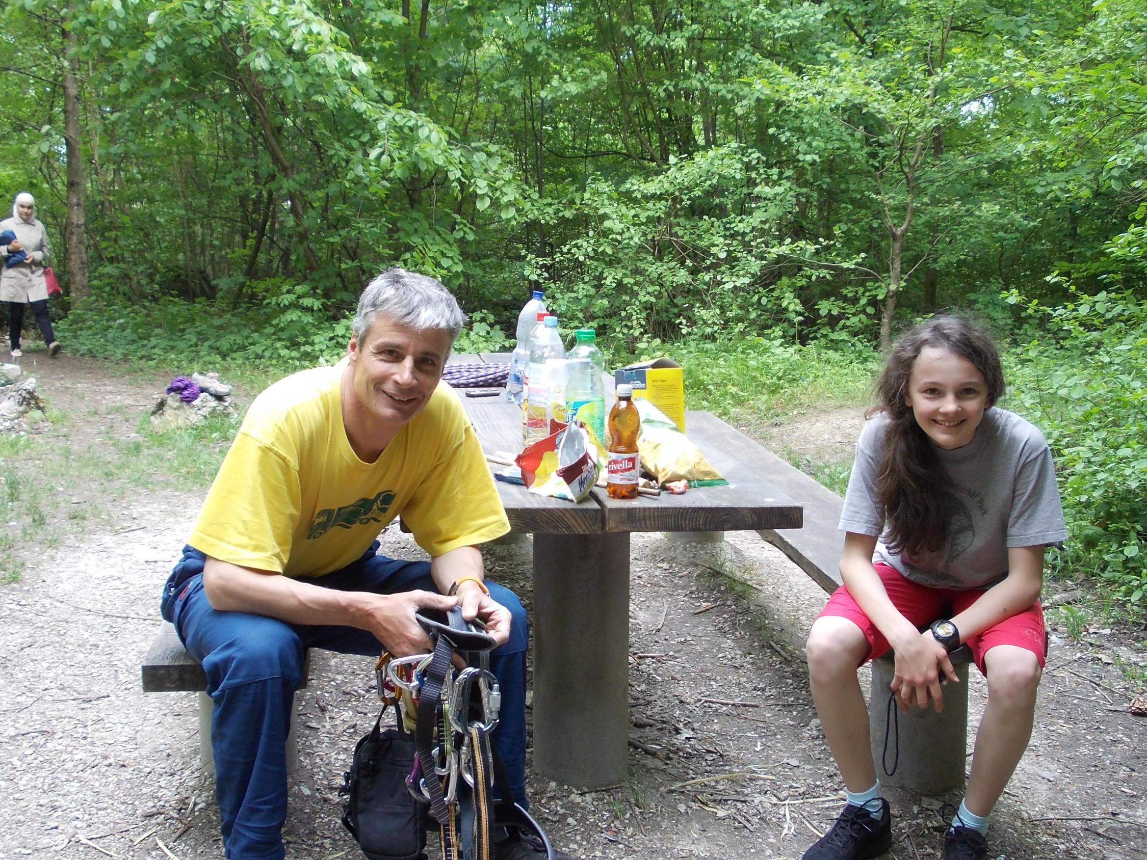 Links von der Platte hats ein gutes Dutzend Wandklettereien, die bestens abgesichert sind. In den
