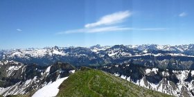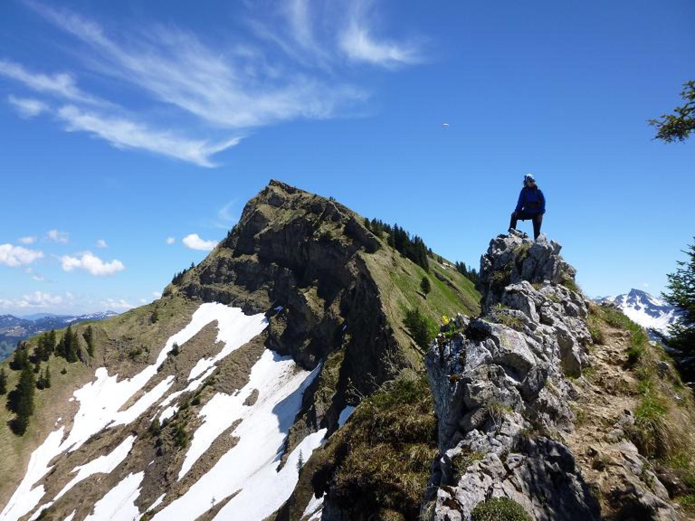 In der Nordflanke (Aufstieg von Schetteregg) noch einige Schneefelder und stellenweise hohe randkluftartige Gebilde unterhalb des Kamms. Zwei Schneerutsche in steileren Rinnen beobachtet, die mit wenig Schnee, aber vielen Steinen ziemlich weit runterpolterten.