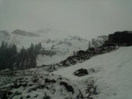Fazit: Schade um den Gipfelhang, der wäre auch sehr schön zu fahren gewesen. Wenn das Wetter nur EIN BISSCHEN mitgespielt hätte... Immerhin, nach zwei Wochen Entzug wieder mal eine Tour!