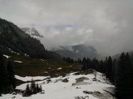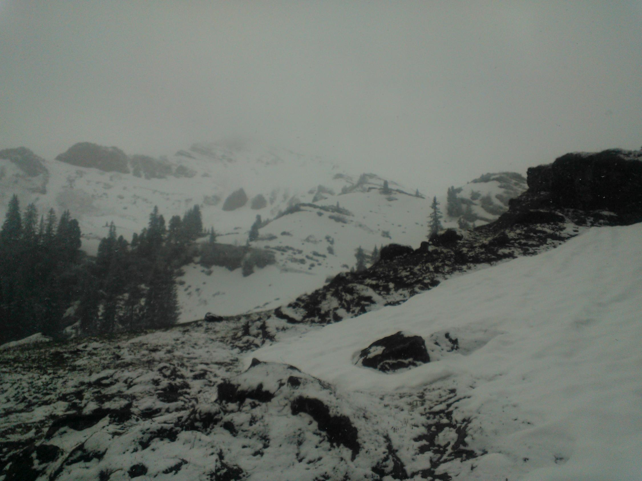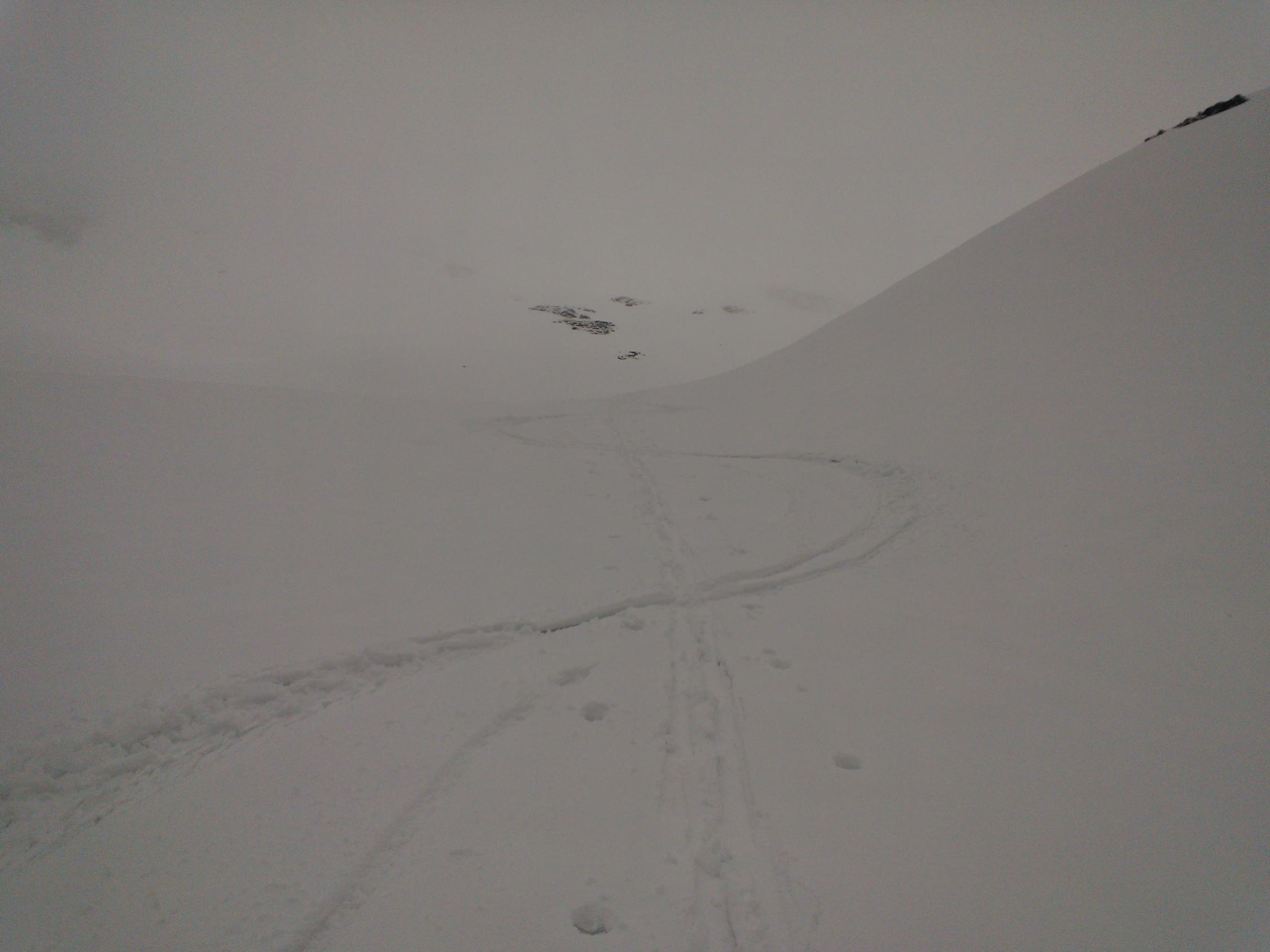 Da ich am Nachmittag eine Sitzung in Bern hatte, und die Wetterfrösche eine Aufhellung für den Vormittag prophezeiten, wollte ich das Angenehme mit dem Nützlichen kombinieren und einen Abstecher ins Diemtigtal machen. Leider hielt sich das Wetter nicht an die Prognose, die Aufhellung fand genau von 07.45 bis 08.15 statt, und dann zog es wieder zu. Also statt Landvogtehorn das einfachere Rauflihorn angepeilt. Bis Punkt 1400 mit dem Auto hoch, von da weg bis zu der Alphütte 1740 Skitragen. Von dort bis zur Grimmifurggi war gute Sicht bei leichtem Schneefall. Im Gipfelhang dann leider totales Whiteout, Nebel, Schneefall, ich sah rein gar nichts mehr und musste mich an den Zaunpfählen orientieren... Ca. 120 Meter unter dem Gipfel dann umgekehrt, bei Nebel ist es einfach sofort ein Risiko, auch auf harmlosen Touren. Die Abfahrt war im Gipfelhang entsprechend mühsam, so ganz ohne Sicht. Unterhalb der Furgg dann schöne Schwünge im Nassschnee mit etwas Neuschnee drauf. Man kann bei der Alphütte immer noch rechts den steilen Hang runter fahren bis unter 1600 MüM.