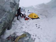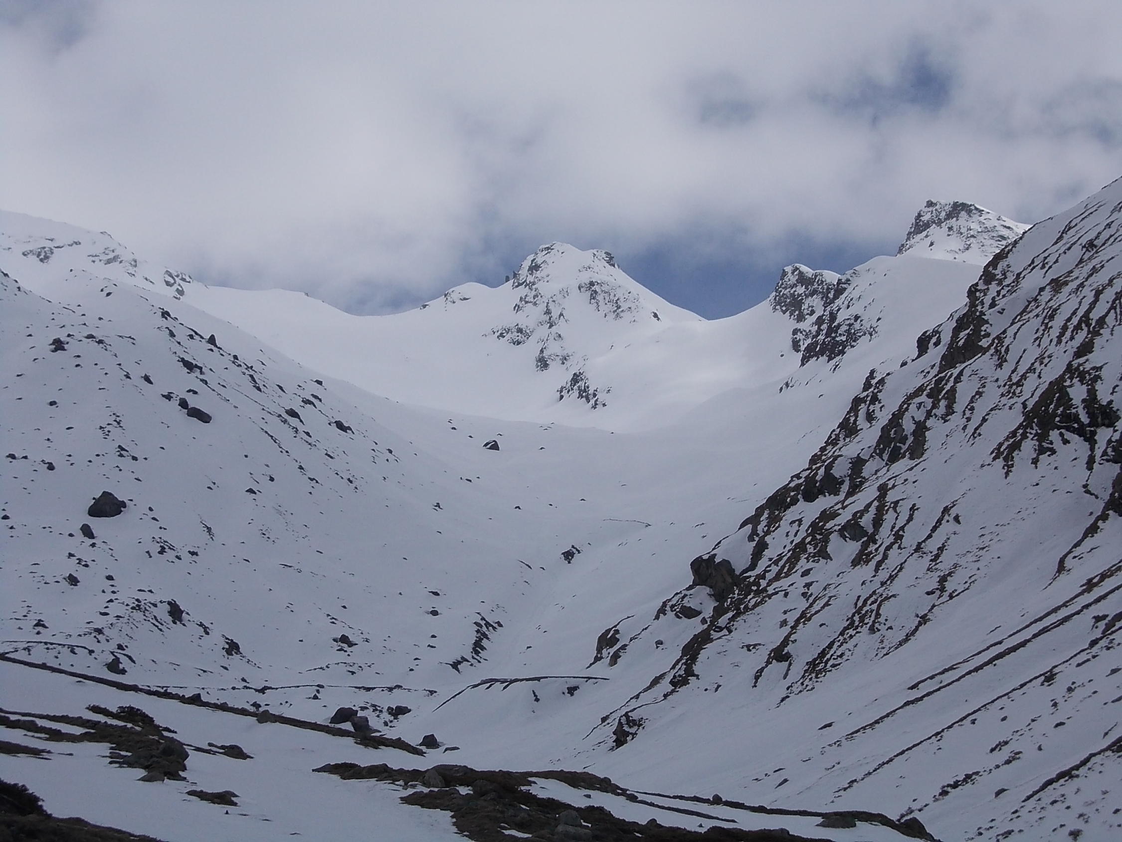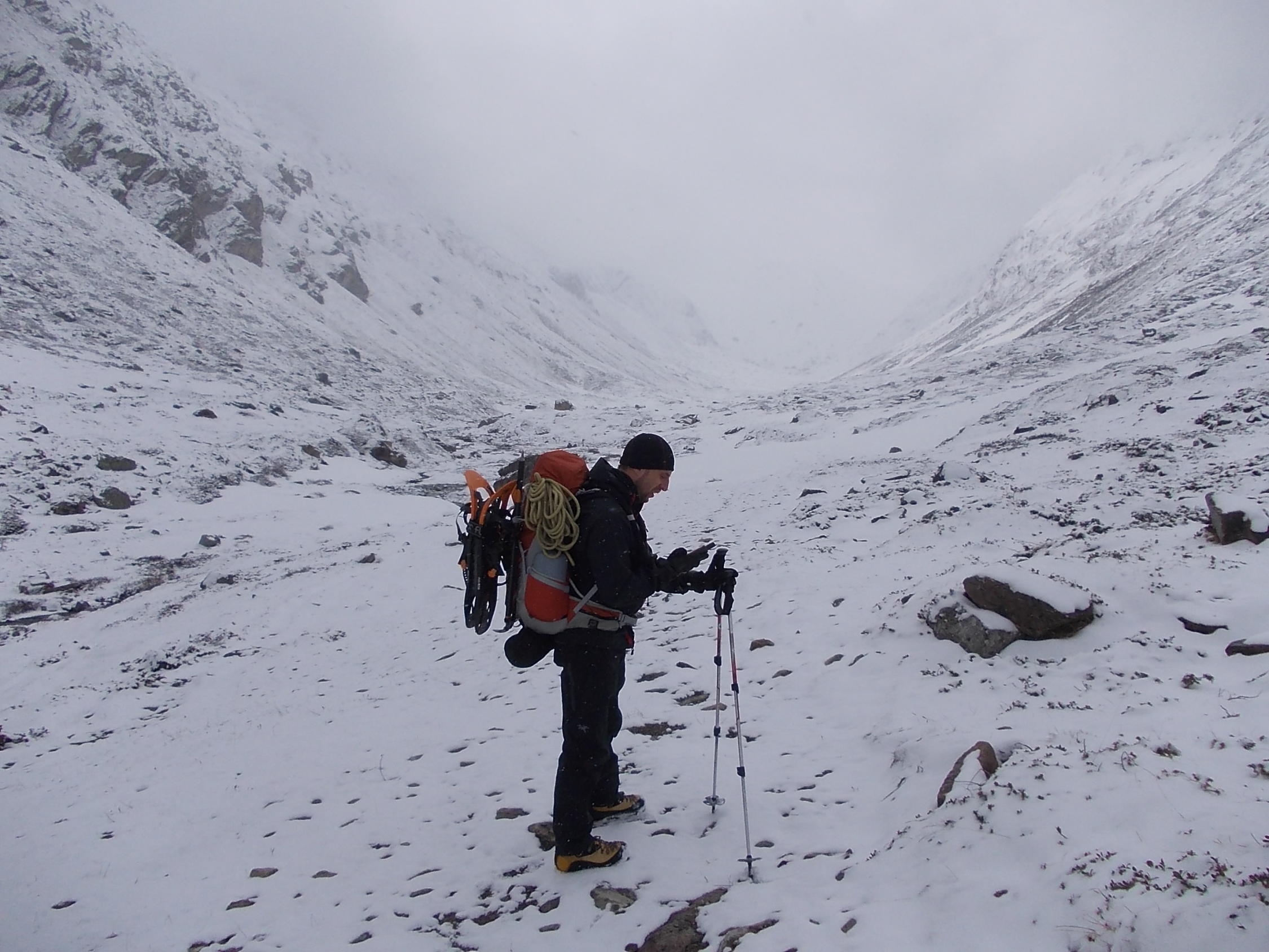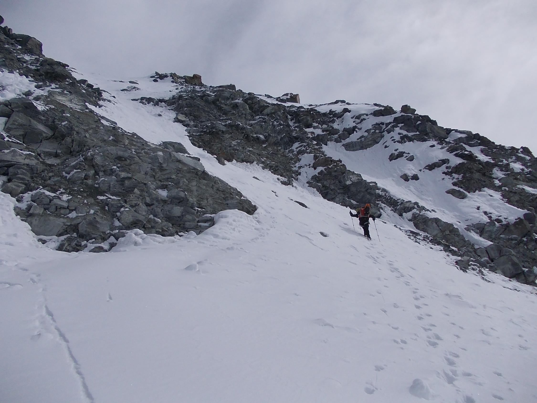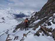 Teilweise Steigeisen und Seilsicherung nötig, die Schneeschuhe kamen ab etwa 2500 m zum Einsatz.