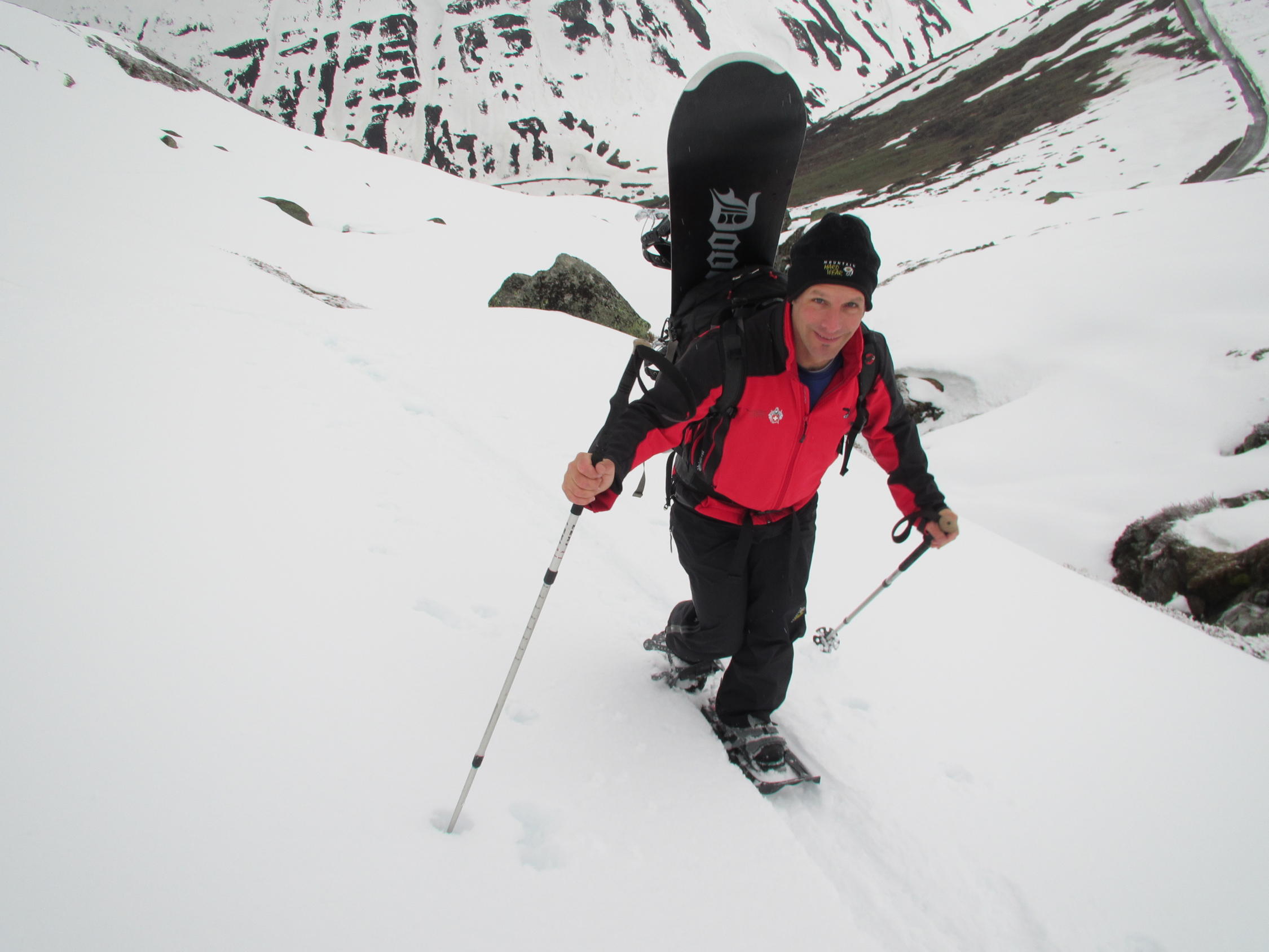 Bis Tiefenbach ist die Passstrasse geräumt. Start ab Tiefenbach in angesulztem Schnee. Mit den Skiern istg der Aufstieg angenehmer als mit den Schneeschuhen- aufgrund der aufgeweichten Schneedecke war stetiges einsinken angesagt....