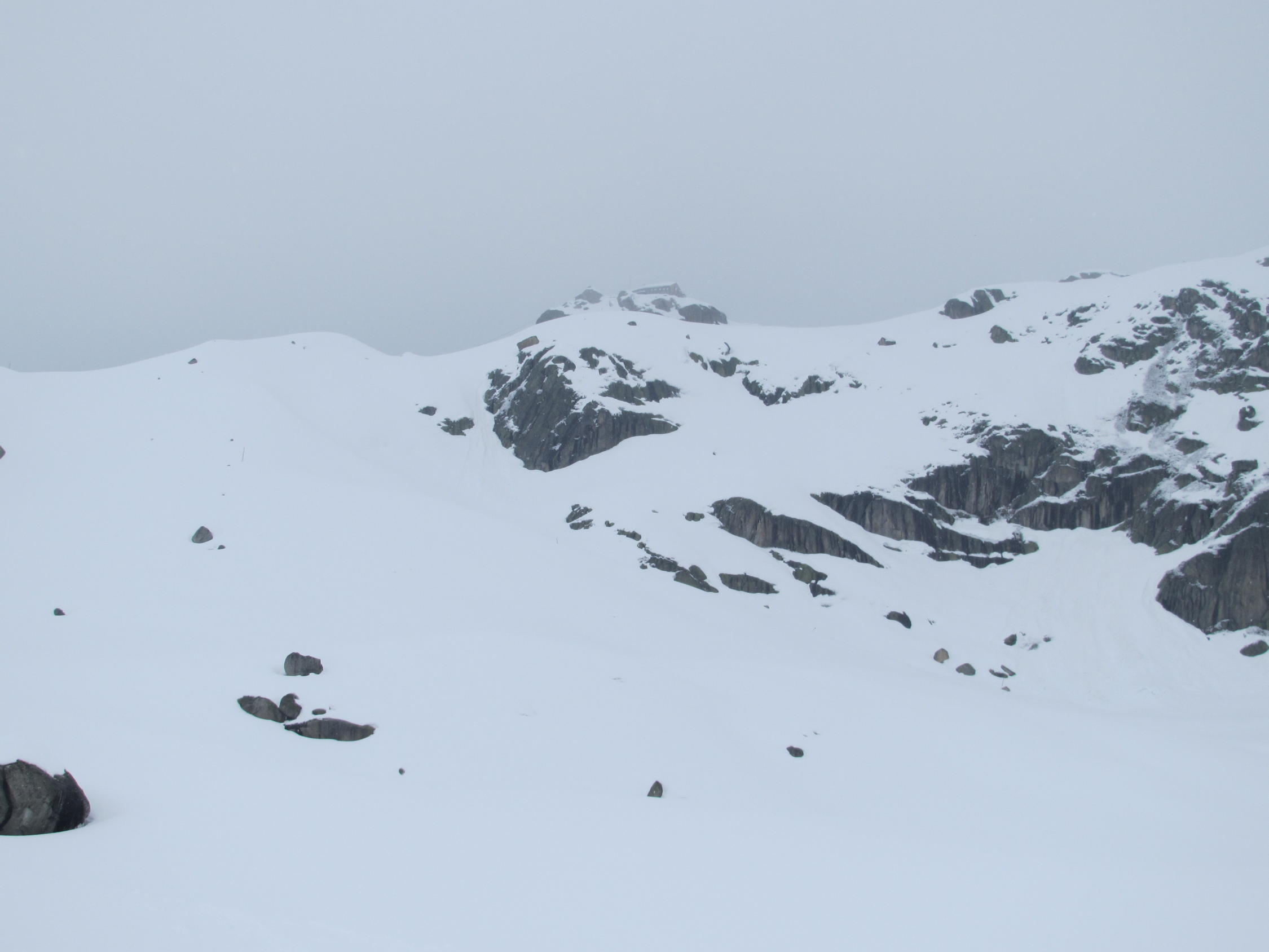 Abfahrt bis zur Passstrasse möglich, es hat noch genug Schnee, bzw. es gibt wieder Pulver gut.