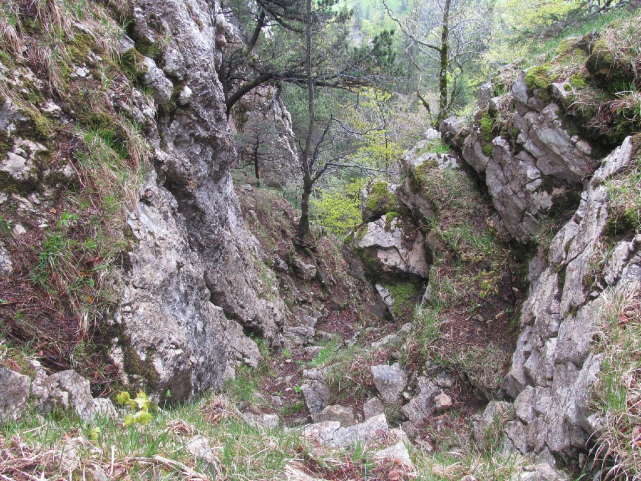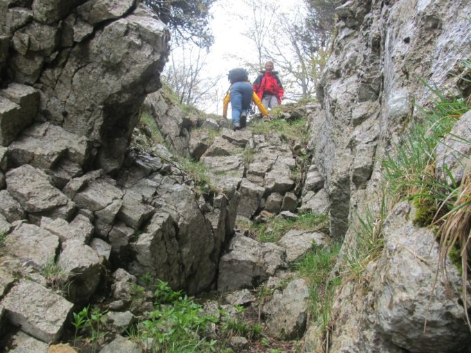 Der, auf der Karte eingezeichnete, aber nicht ausgeschilderte Pfad via Chlus, ist entsprechend glitschig, bietet ab und zu Hindernisse mit querligenden Bäumen.