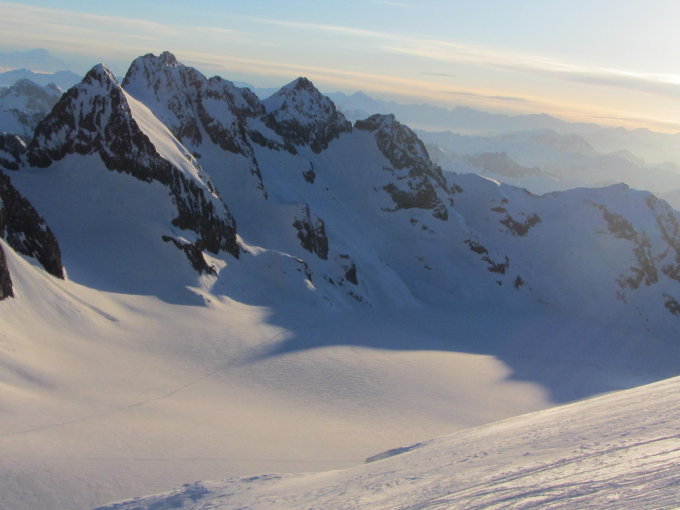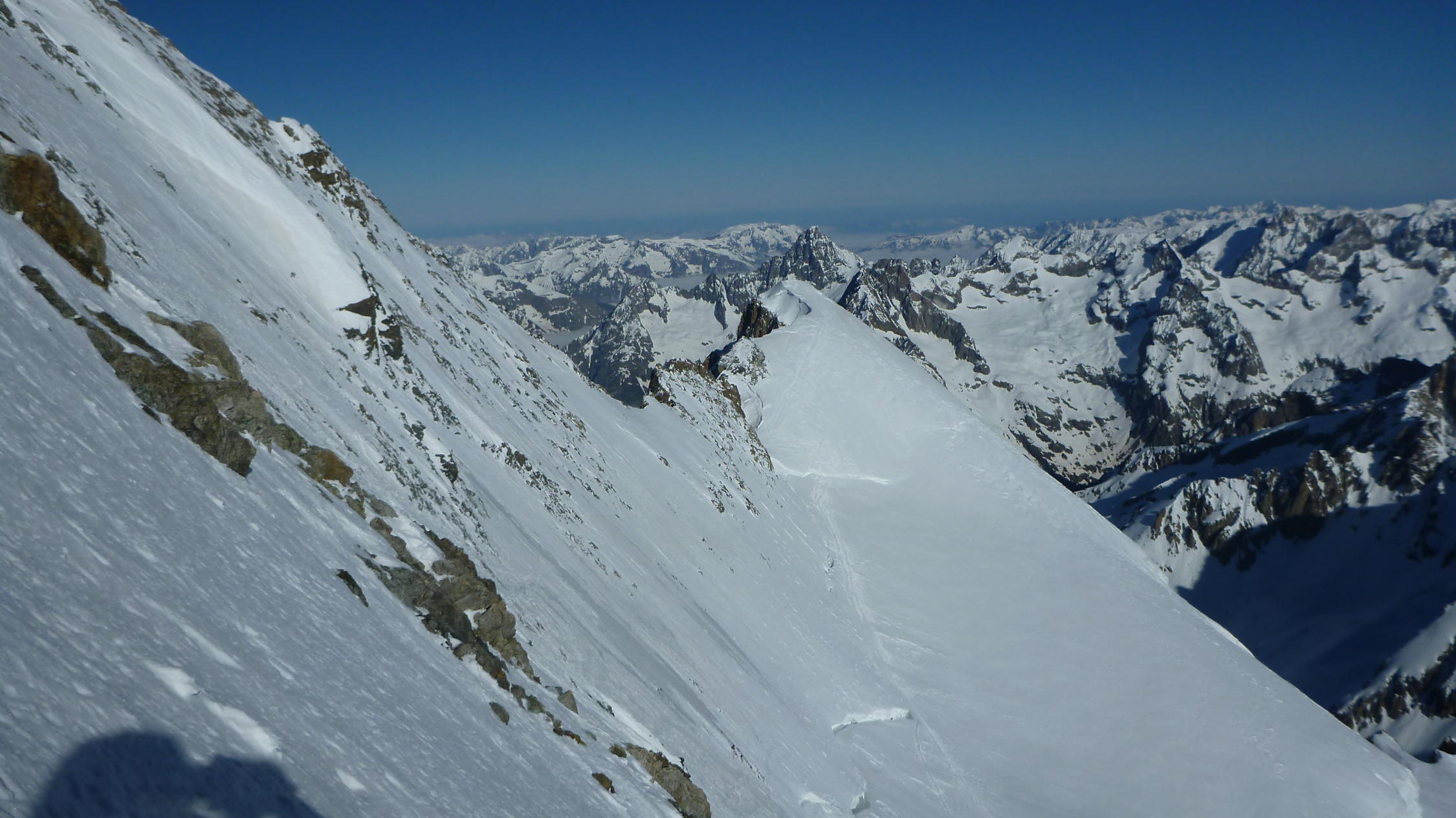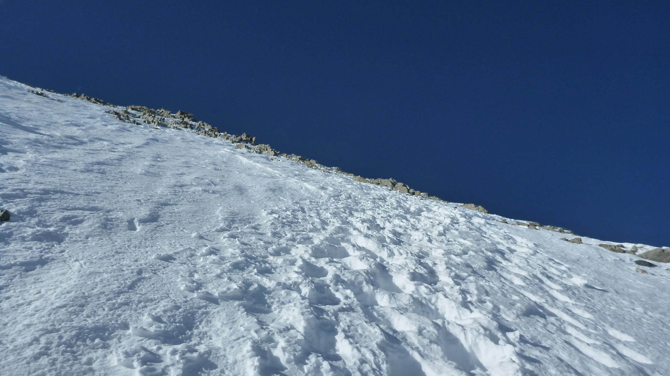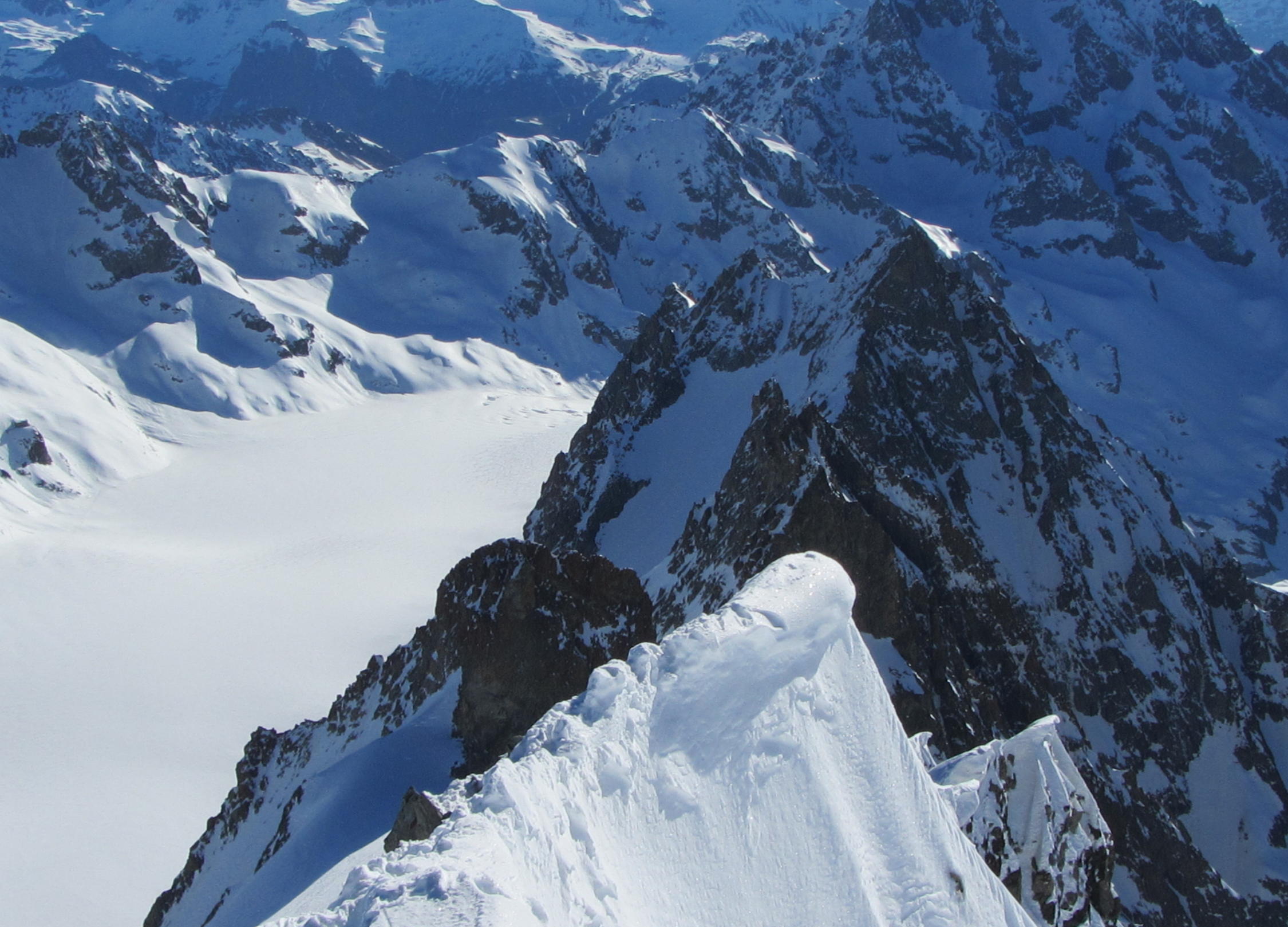 Schnee wird unten weniger und Couloir wird sicher schlechter, dafür dann Grat eher machbar.