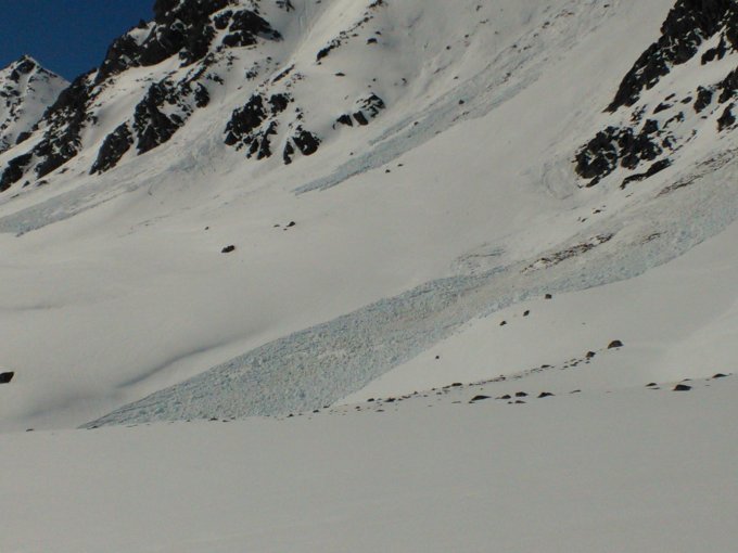 Grosse Bretter am Sentischhorn, wohl vom Vortag. Generell muss man festhalten, dass die Verbindung vom Neuschnee zum Altschnee noch nicht super ist. Ich löste im unteren Teil der Abfahrt einen oberflächlichen Rutsch aus (Fotos), ungefährlich, aber immerhin...