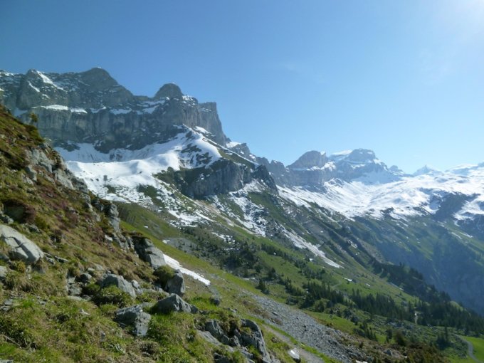 der zustieg auf den grasschrofen ist sowieso schon heikel und zur zeit (mit schnee) wirklich nicht zu empfehlen. von der talstation der brunni-bahn sieht man diesen bereich ein und kann sich vorweg orientieren ob der schnee weg ist.