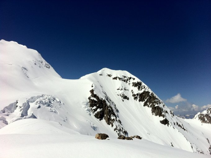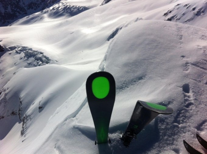 Super Verhältnisse. Ganze Flanke gut aufgesulzt. Direktabfahrt vom Gipfel gut machbar.