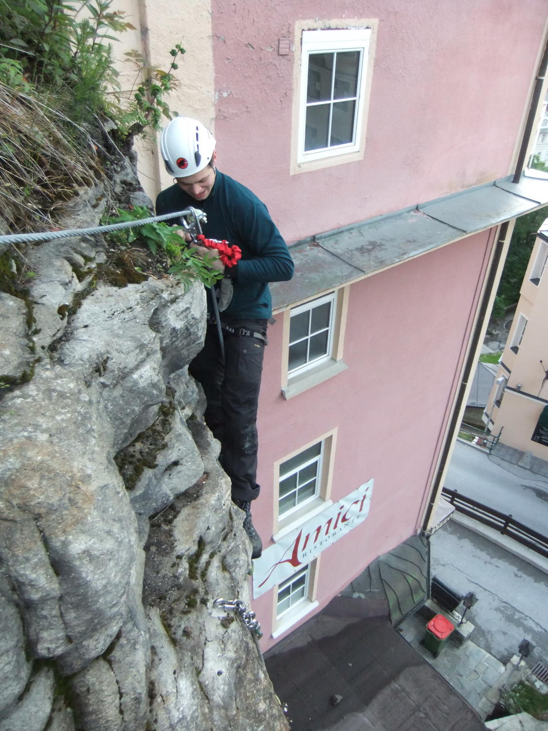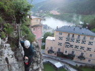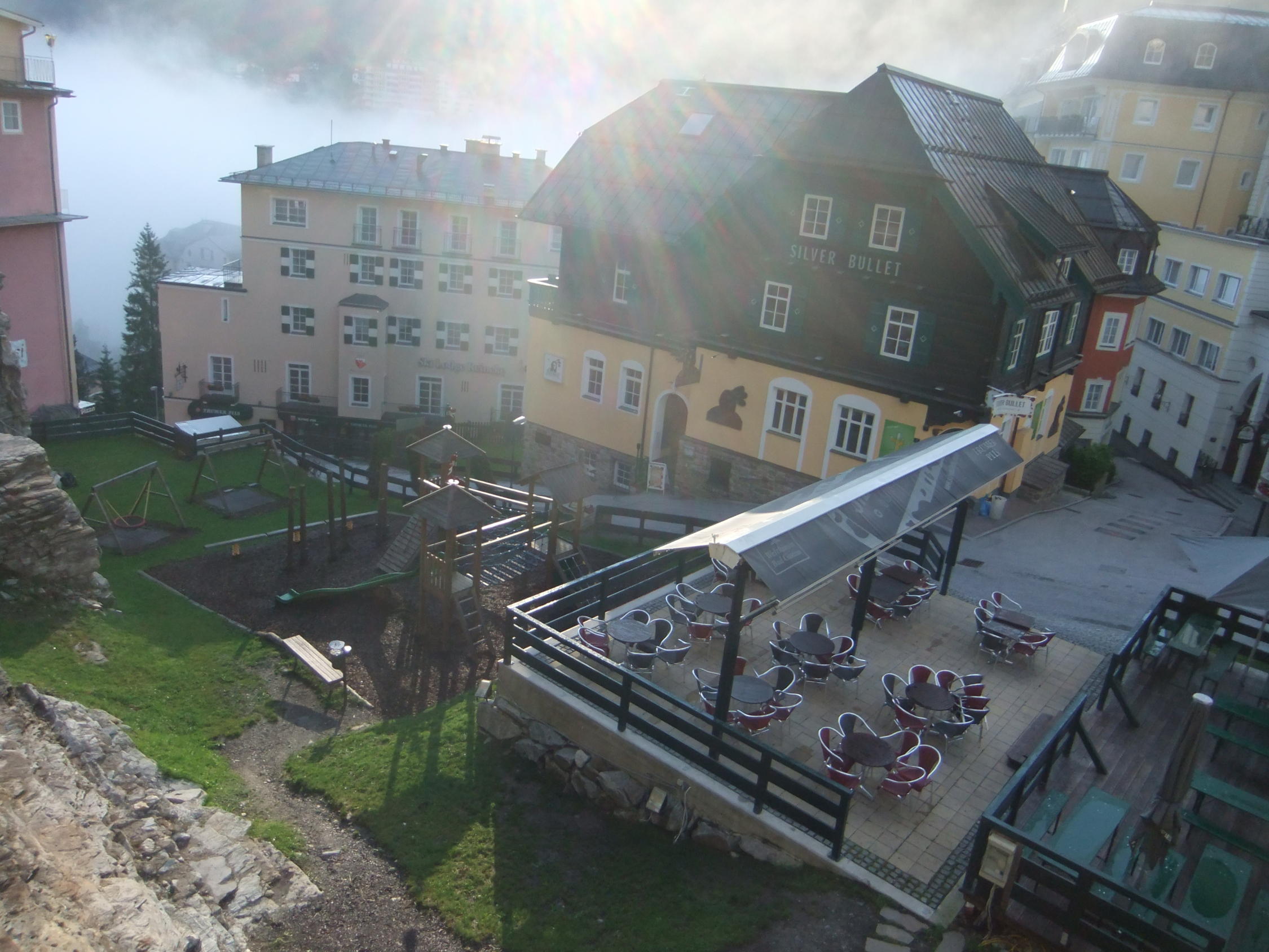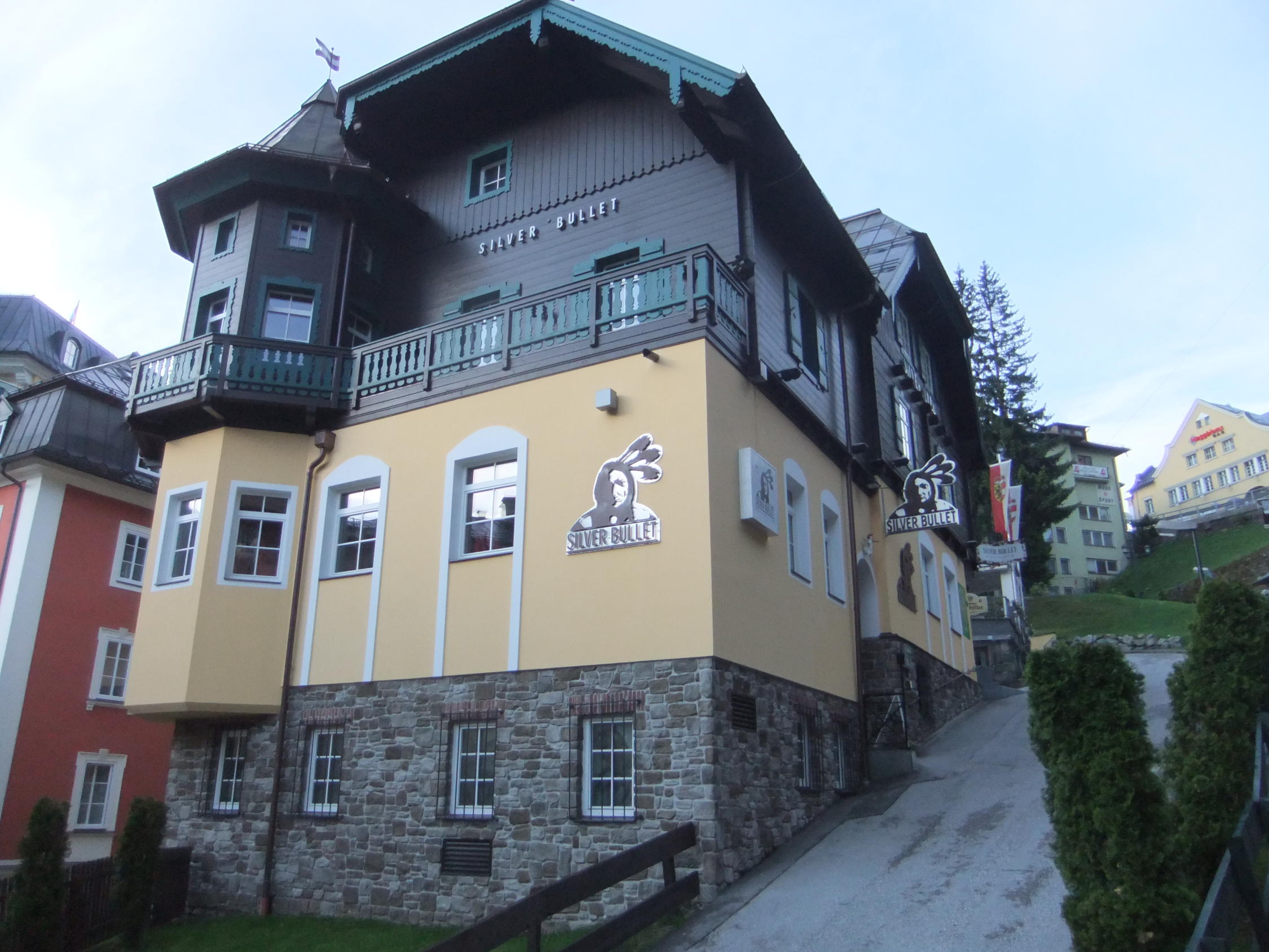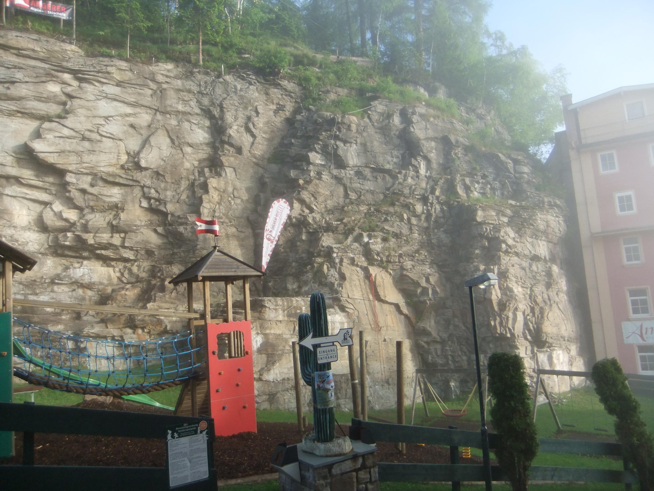 Mitten in Bad Gastein zwischen Hotels und Bars ein Klettersteig. Wo gibt's so ein Ambiente ? Beim Klettern zu den Hotelzimmergästen winken. Climb & Chill out. Liegestühle sind im Gastgarten vorhanden. Die Silver Bullit Bar ist täglich ab 15:00 Uhr geöffnet.