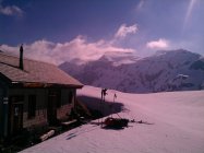 sehr gut, bis 1750 hm muß man Ski tragen (ca. 1 Std.), ab da auf Ski hochsteigen, ab 2040 hm hervorragende Verhältnisse, es liegt noch extrem viel Schnee. Wir waren umständehalber zu spät dran, sind leider erst um 5 Uhr losgegangen, deshalb bei 2700 hm Tour abgebrochen u. trotzdem zu spät (10:45 Uhr) mit Abfahrt gestartet.