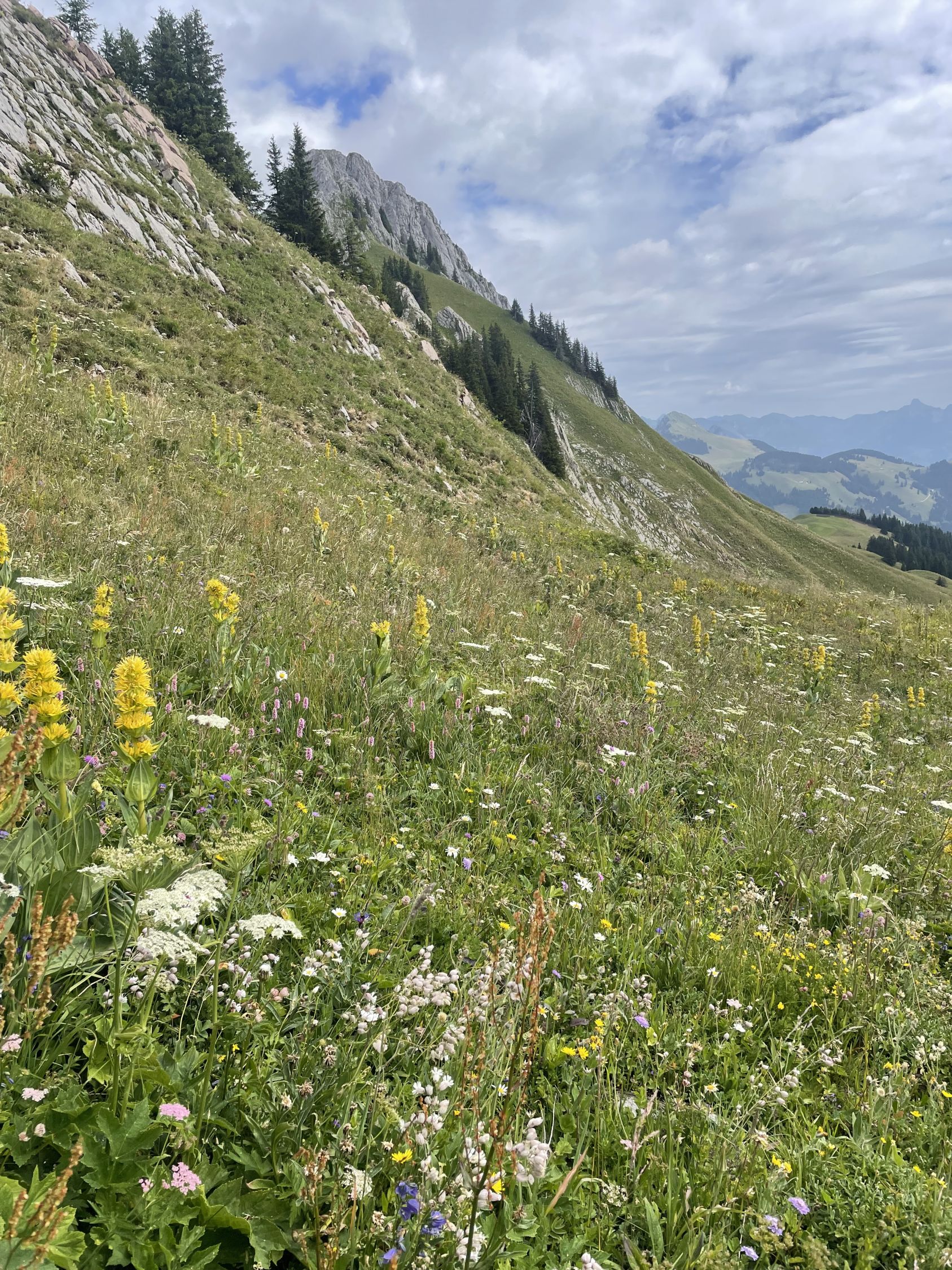 Ich habe ja bekanntlich meinen Ehrgeiz meinen Fähigkeiten entsprechend nach unten angepasst, aber trotzdem möchte ich nicht jedes Jahr dieselben Wanderungen machen sondern hin und wieder etwas Neues ausprobieren. Heute sollte es die Gastlosen Umrundung sein. Bis Chalet du Soldat war das schön, aber nicht anspruchsvoll. Dann aber bis Wolfsort stellenweise an der oberen Grenze von rotweissrot. Bei Regen nicht zu empfehlen und Wegfindung nicht immer trivial. Ich bin zweimal zuweit links den Hang hinauf, unschön. Nach Wolfsort auf der anderen Seite zurück, wunderbare Alpenflora und bis zum Grat wenig schwierig. Von dort bis Musersbergli muss man nochmals gut schauen, wohin man tritt. Sehr lohnenswert, hat das Zeug zum Klassiker!