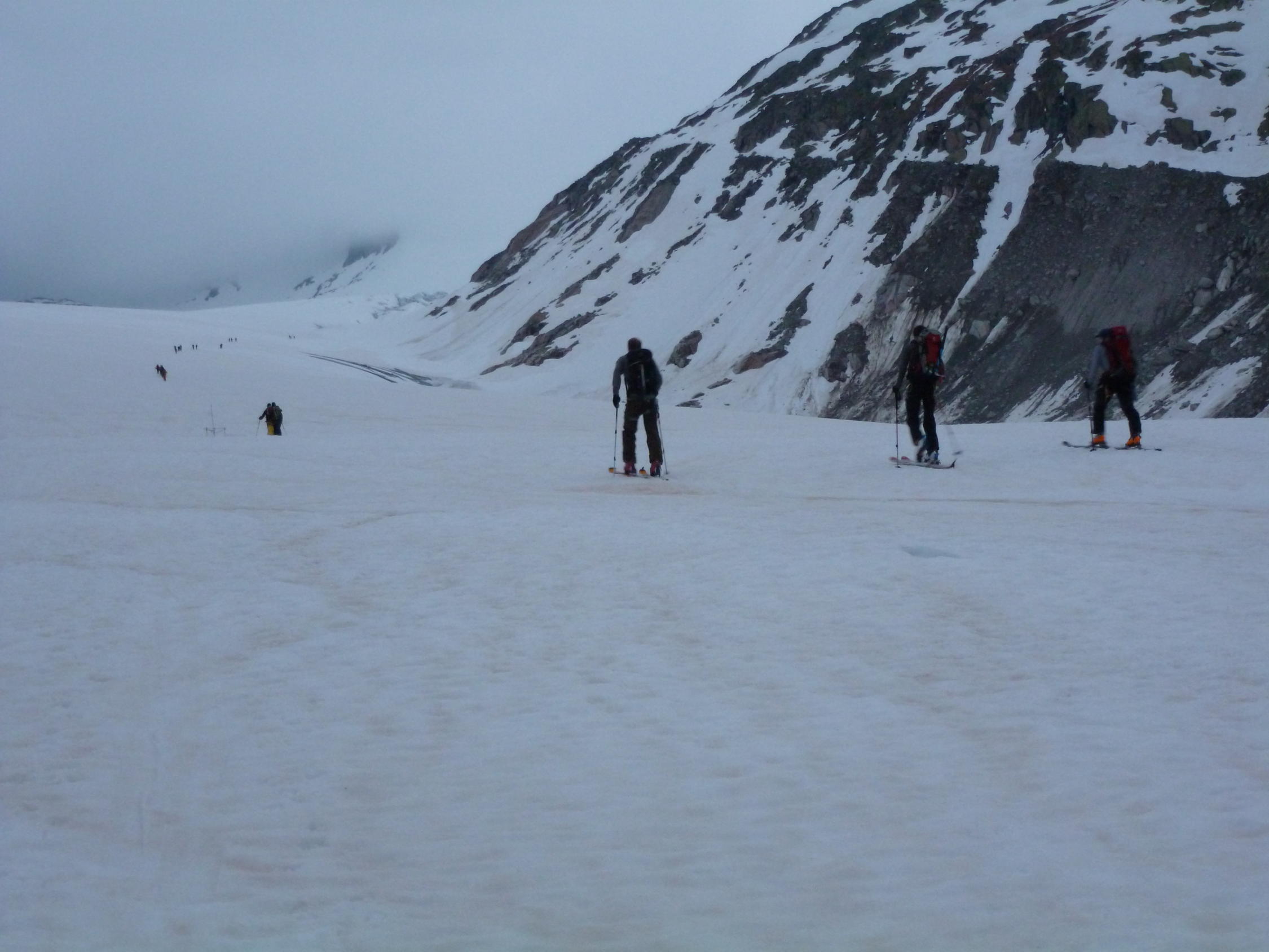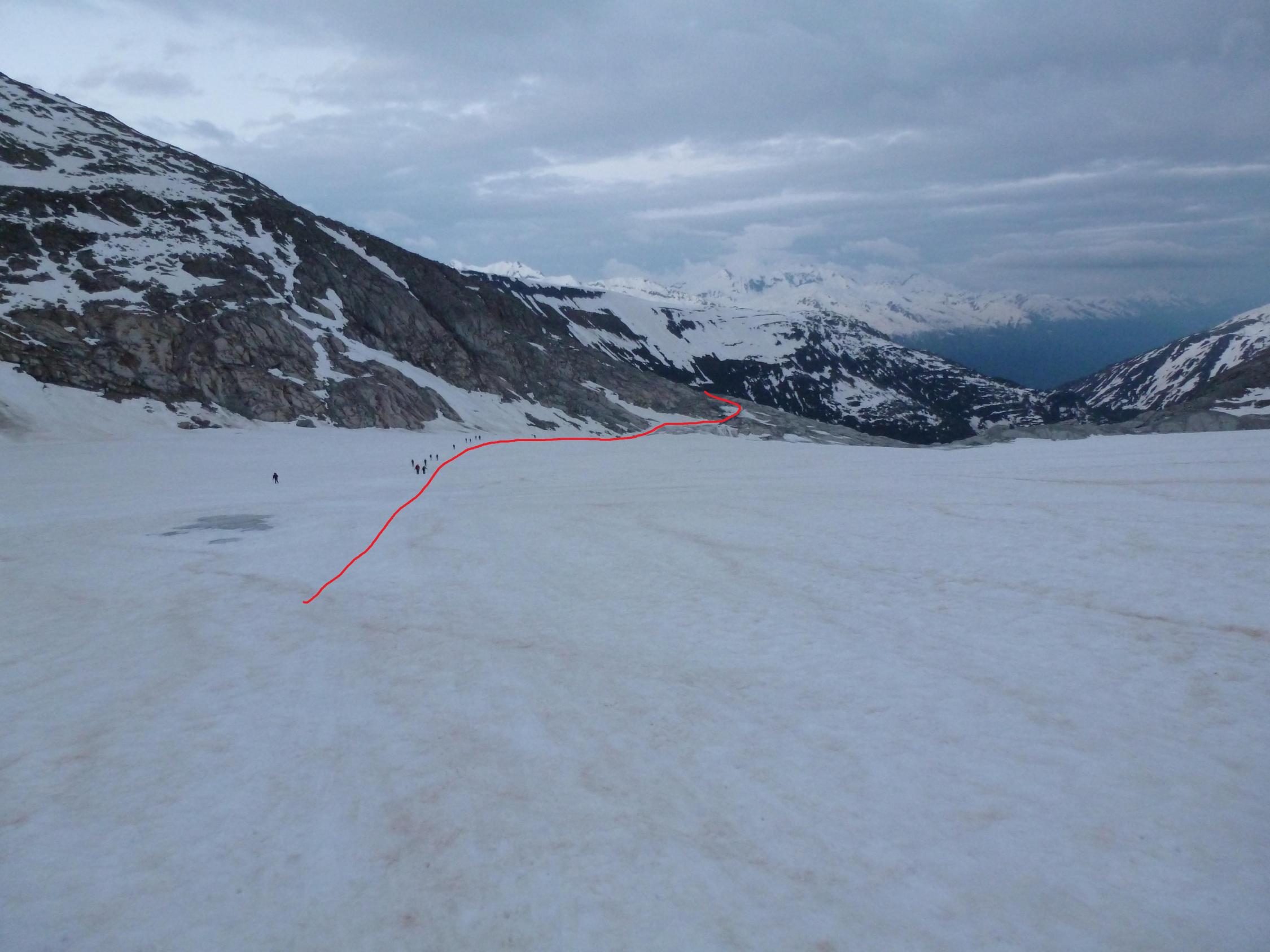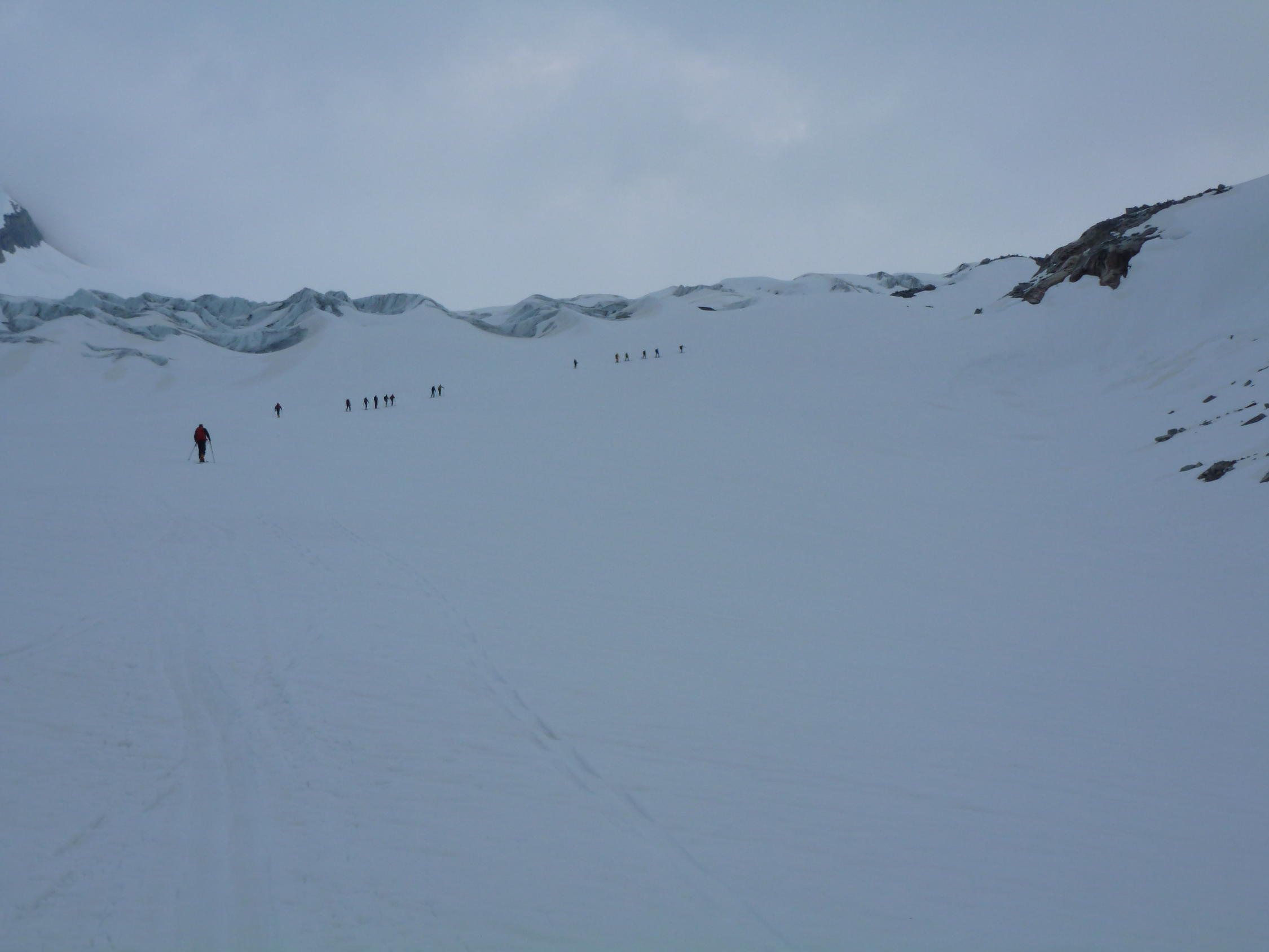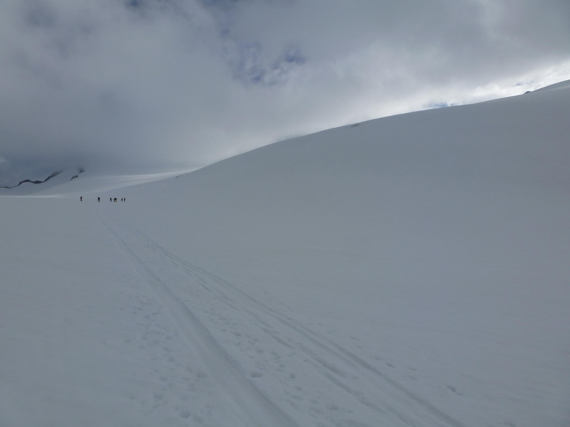 Es braucht dringend klare Nächte, denn Schnee hats noch überdurchschnittlich viel. Von den Spalten sind nur die wirklich grossen, gut erkennbaren geöffnet.