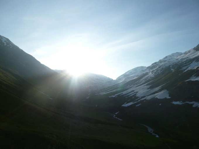 Es liegt generell noch viel Schnee. Der Wanderweg in der Ostflanke liegt ab etwa 2700 HM über weite Teile unter dem Schnee. Ab der Gianda d'Albris herrschen spätwinterliche Verhältnisse.