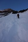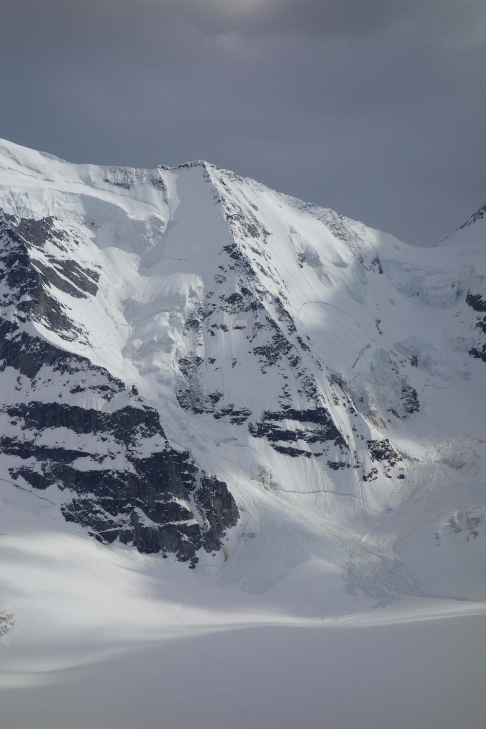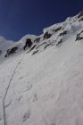 Für den Zustieg muss zwingend unter einem Hängegletscher gequert werden.