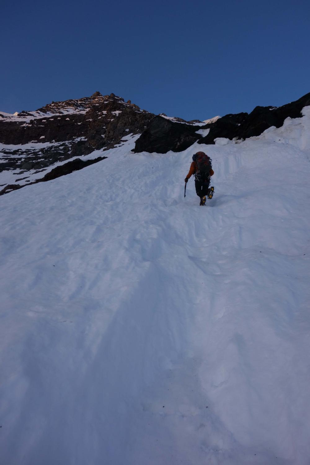 Bleibt die nächsten paar Wochen gut. Die Begehung der Route wird sich mit fortschreitender Verfirnung vereinfachen. Wärme muss beachtet werden.