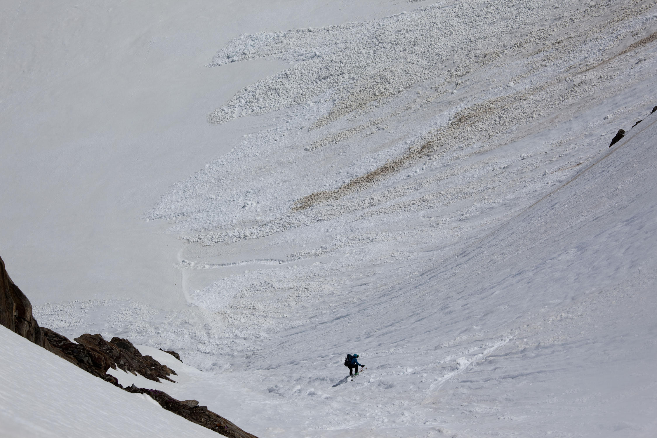 Abfahrt über den Glacier de Valsorey tiptop. Mangels Schnee kurzer Gegenanstieg auf den Weg zur Cabane de Valsorey zu Fuß, dann Abfahrt bis auf ca. 2500 m mit anschließendem Hatscher nach Bourg St.-Pierre.