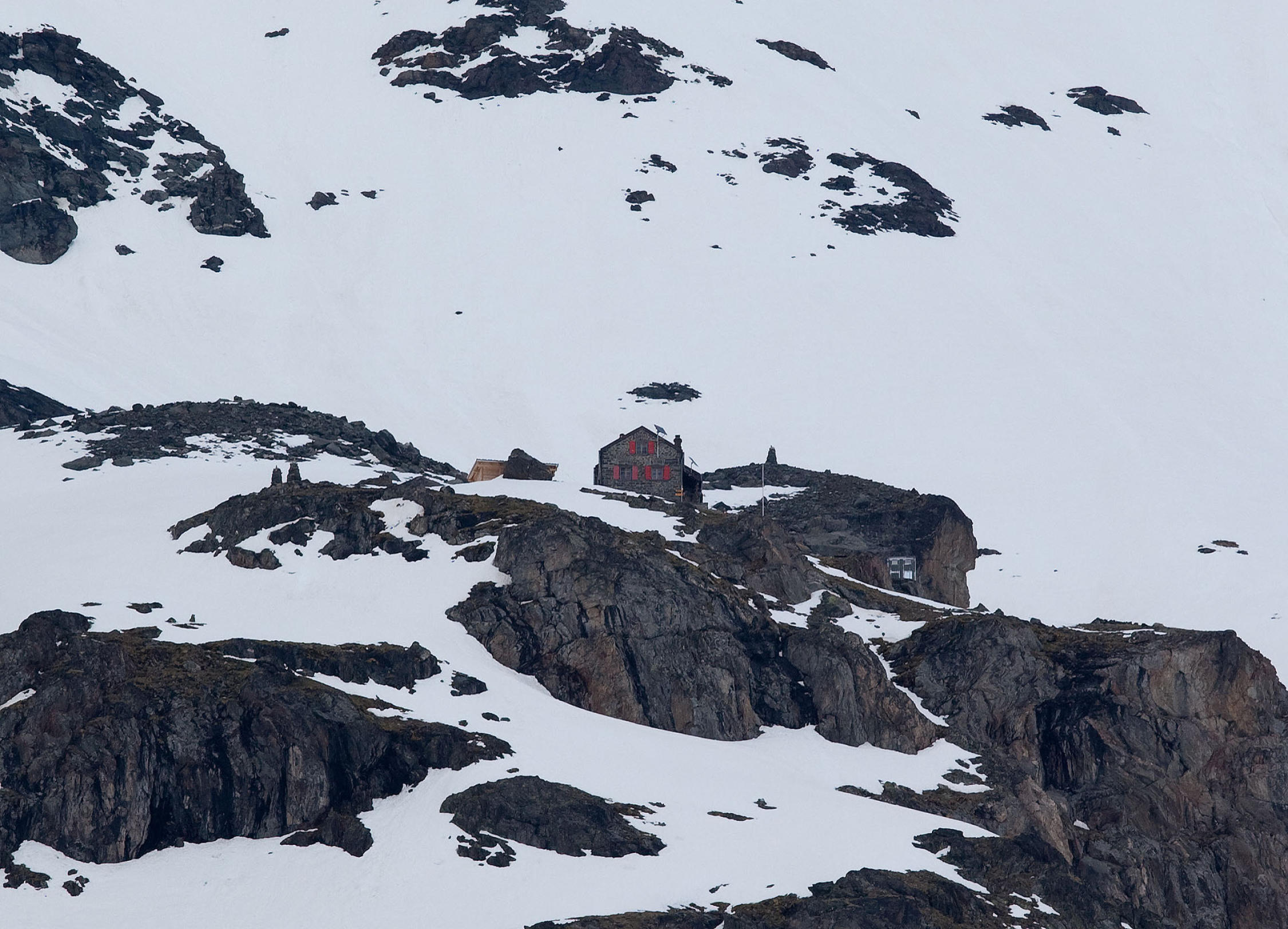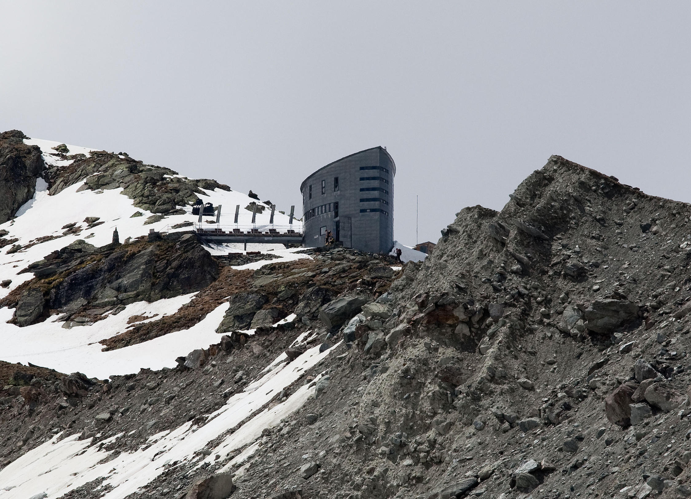Bike am Rückkehrpunkt (Abzweig von der Fahrstrasse Valsorey oberhalb Bourg St.-Pierre) deponiert für Autoholen am Nordportal des Grossen St.-Bernhard-Tunnels.