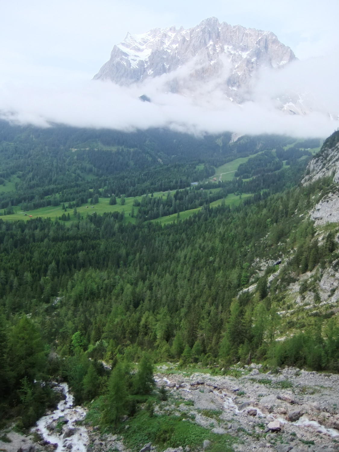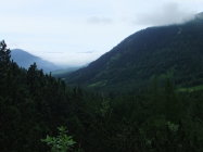 Die Täler auch nachmittags im Nebel. Tourenstart 15:30 Uhr je höher ich stieg und so abendlicher es wurde, umso besser wurde das Wetter und das Wetterwandeck mit seiner Wetterspitze (Zugspitzmassiv) enthüllten sich ihrer Wolken und präsentierten sich in der Abendsonne.